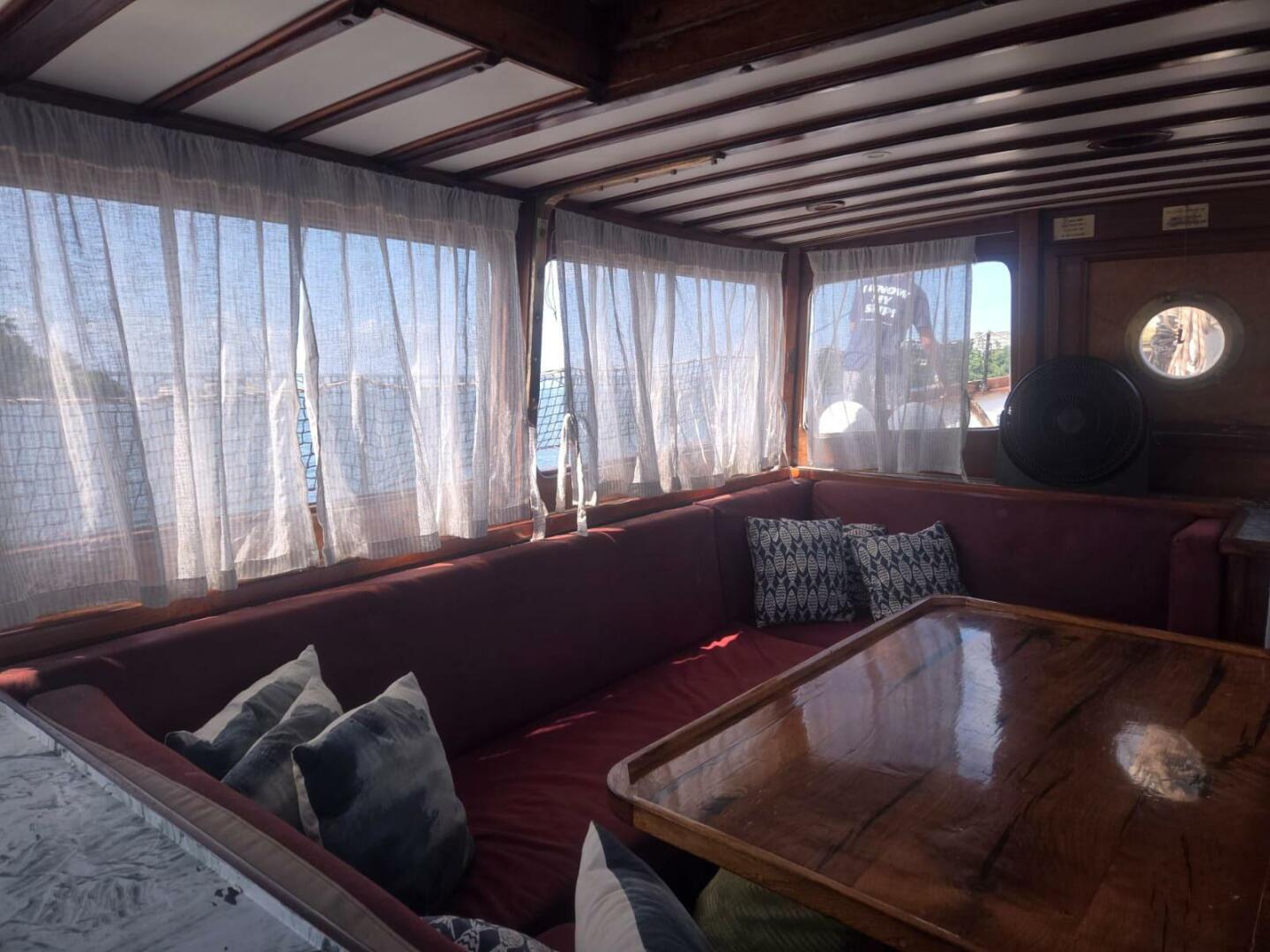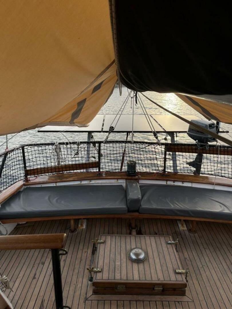 - Full Deck Awning: Canvas over mizzen boom
