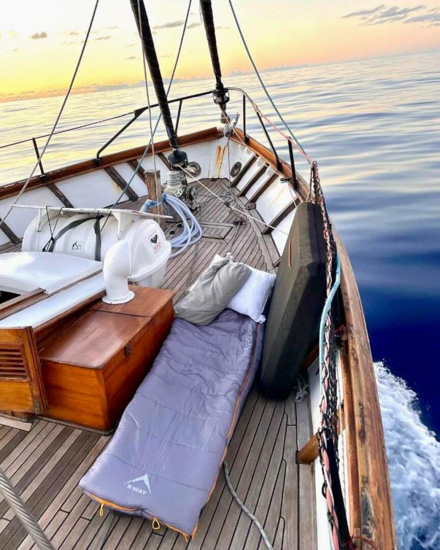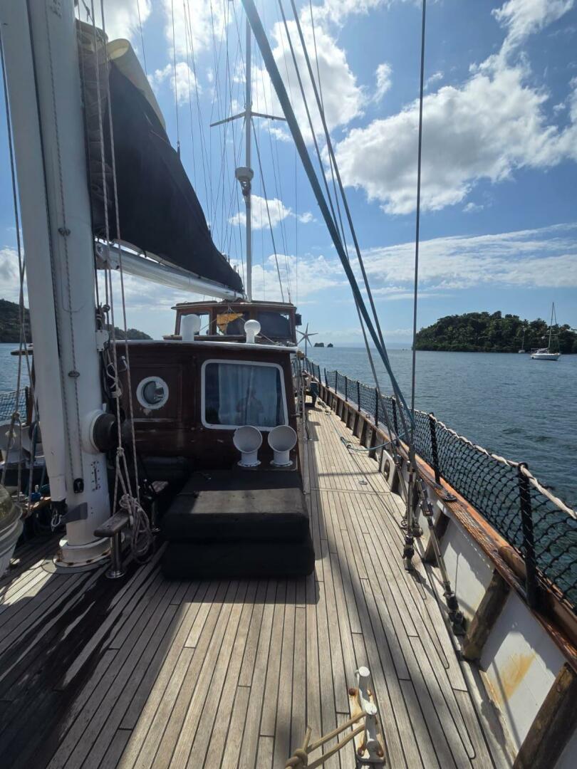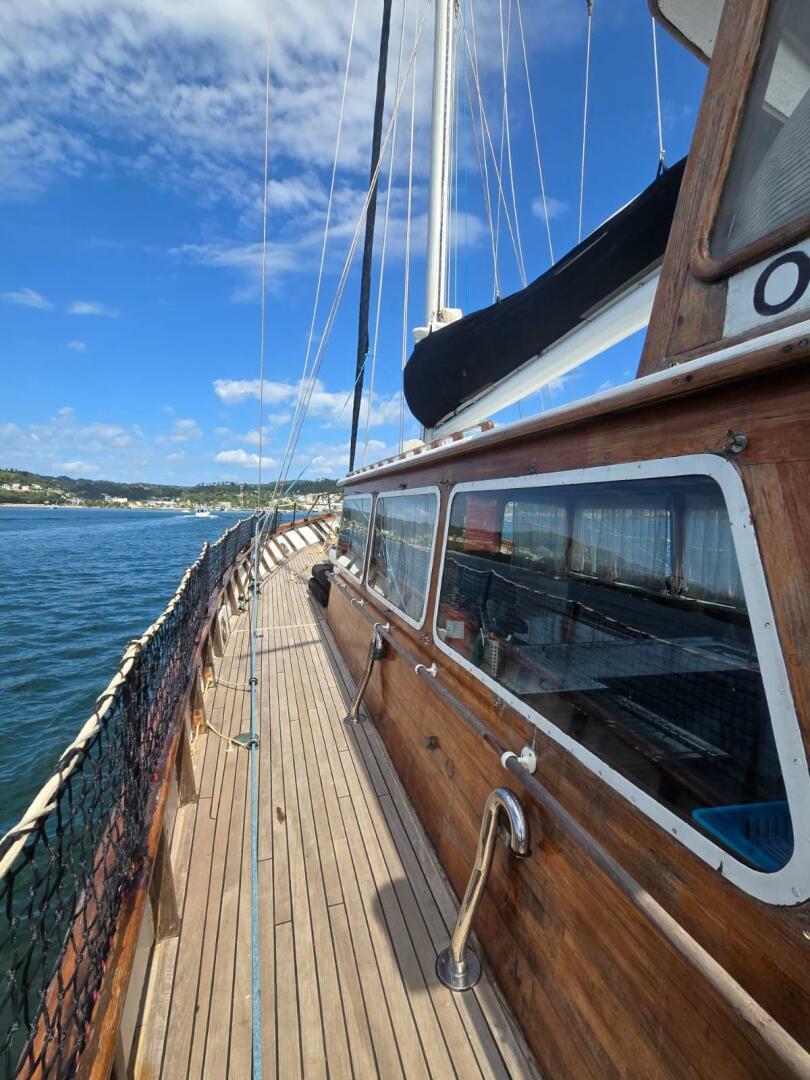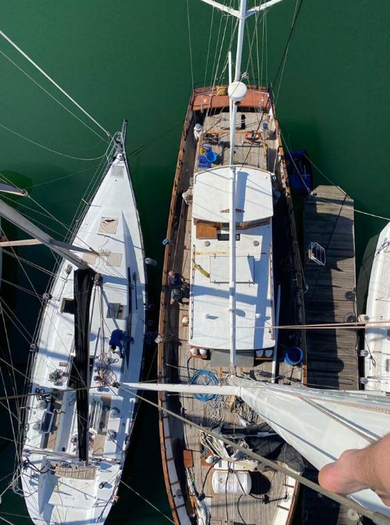 In 2020, her current owner commissioned a major refit, transforming her into the proud ocean voyager she is today. Upgrades included the installation of a brand-new 225hp John Deere diesel engine with a new turbo and gearbox oil cooler, all-new through-hull fittings, a fully replaced rudder and hydraulic system, and the removal and servicing of both masts with new stainless-steel rod rigging. In 2022, her topsides and antifoul were renewed, completing her rejuvenation.
