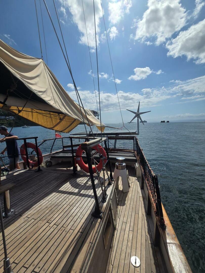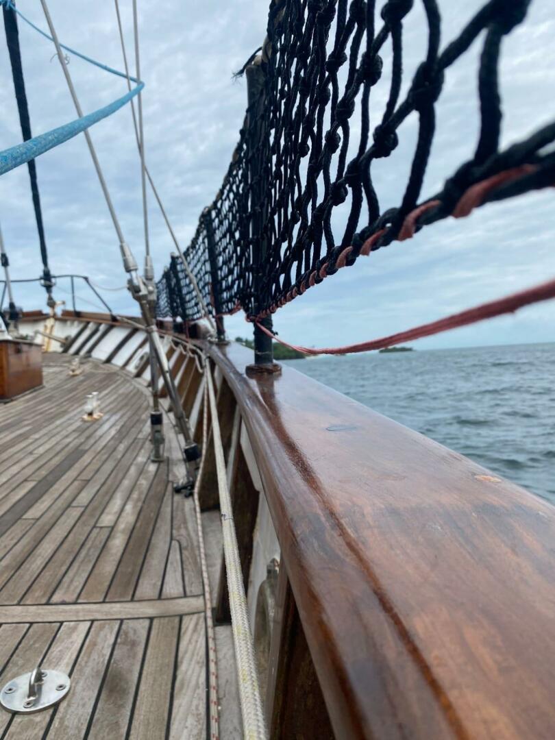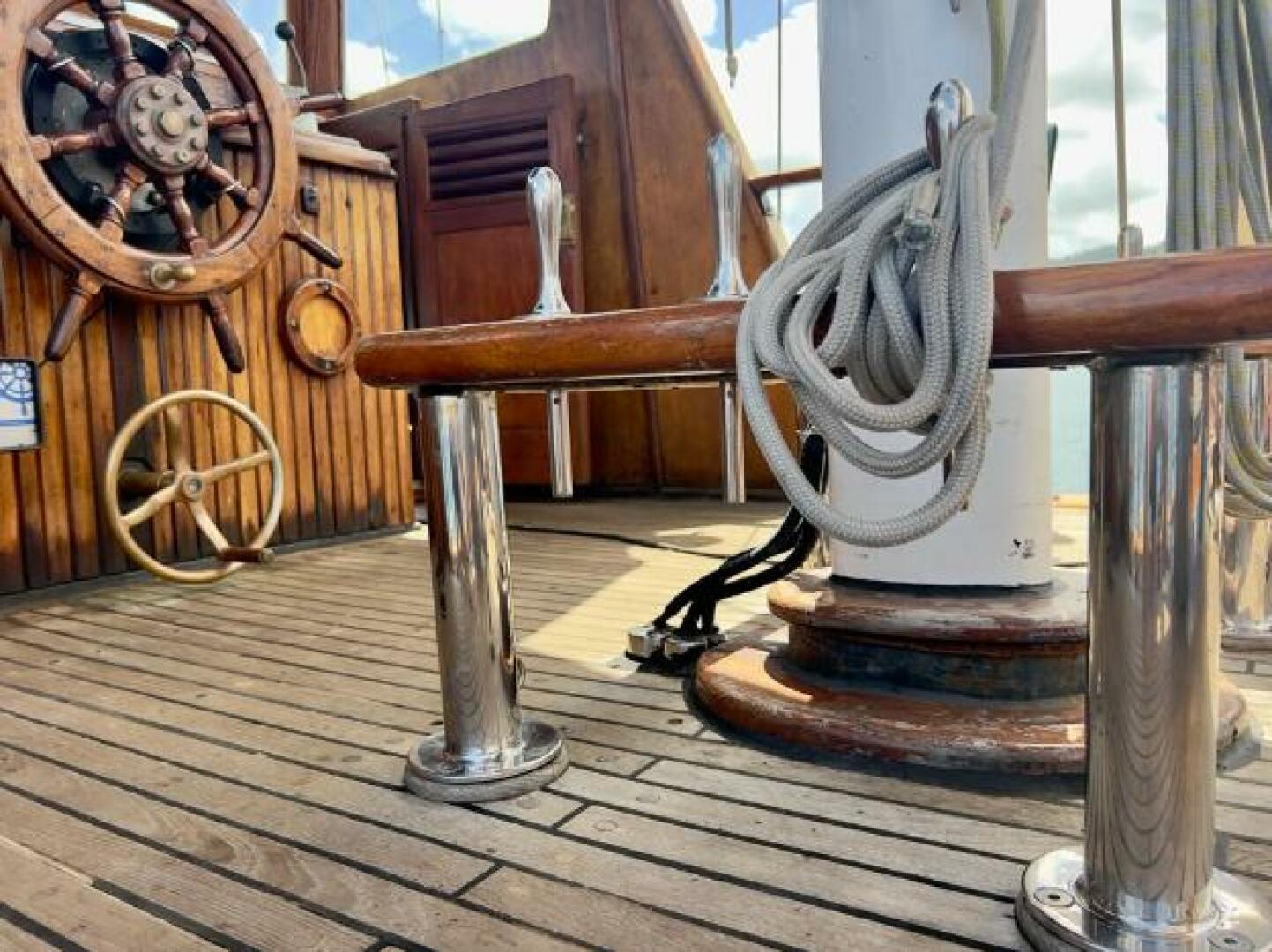 In 2020, her current owner commissioned a major refit, transforming her into the proud ocean voyager she is today. Upgrades included the installation of a brand-new 225hp John Deere diesel engine with a new turbo and gearbox oil cooler, all-new through-hull fittings, a fully replaced rudder and hydraulic system, and the removal and servicing of both masts with new stainless-steel rod rigging. In 2022, her topsides and antifoul were renewed, completing her rejuvenation.