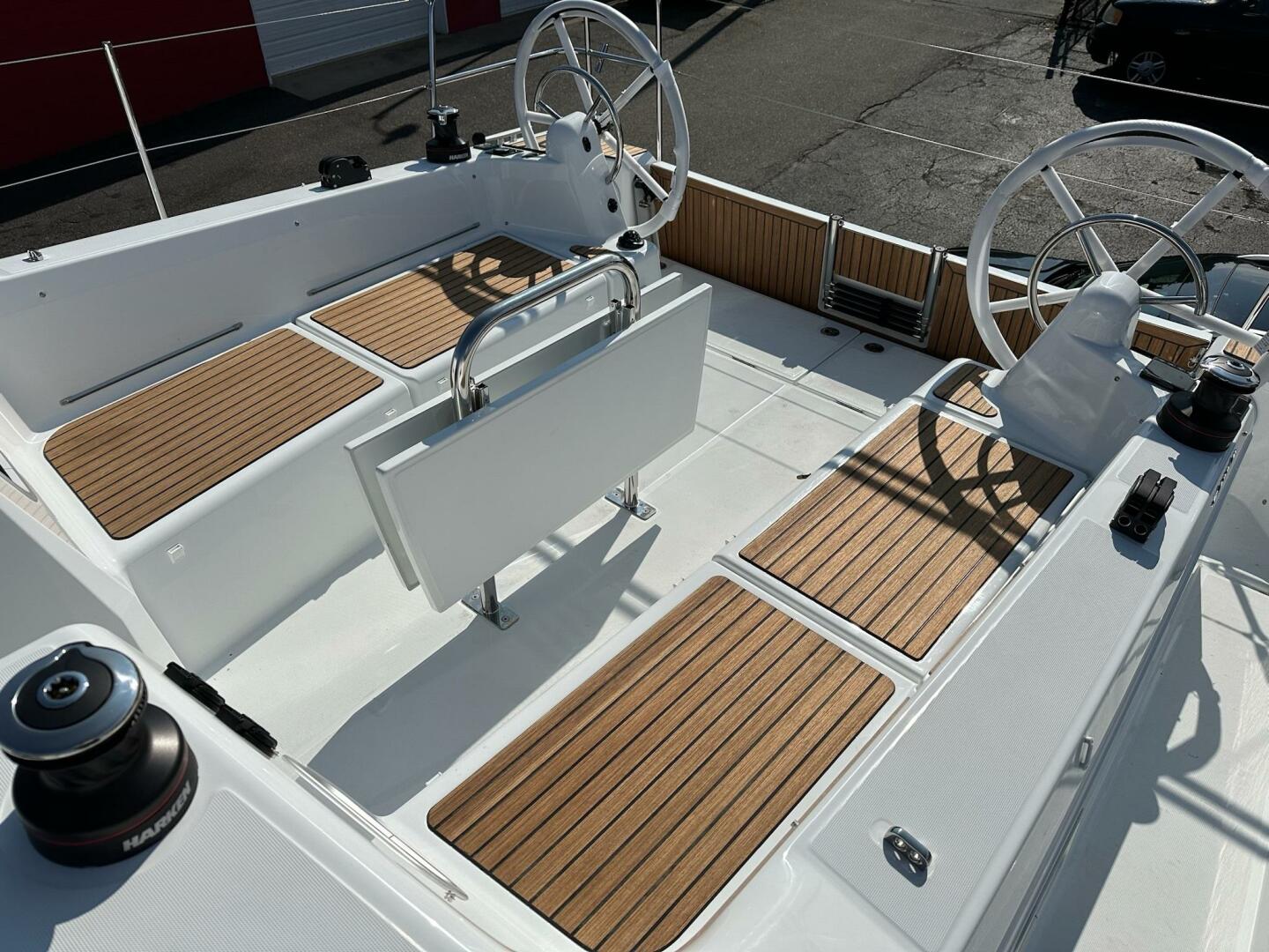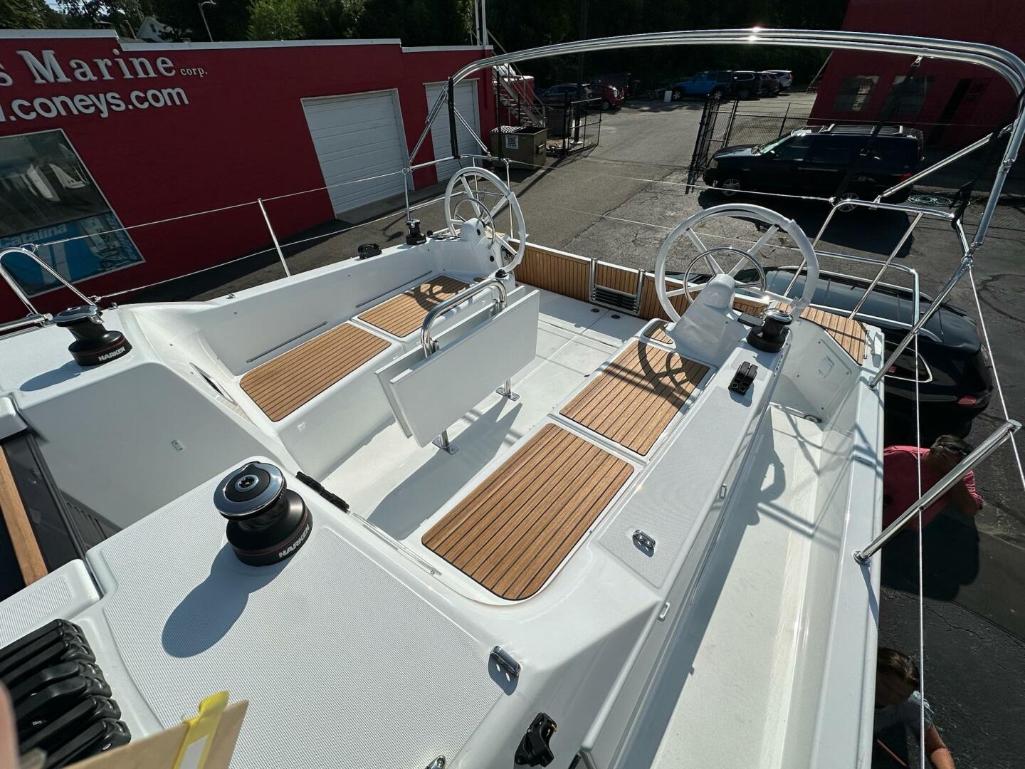 In stock and available now at Coneys Marine! Award-winning walk-around sidedecks; Powerful and stable hull with dual rudders, twin wheels, and Selden rig