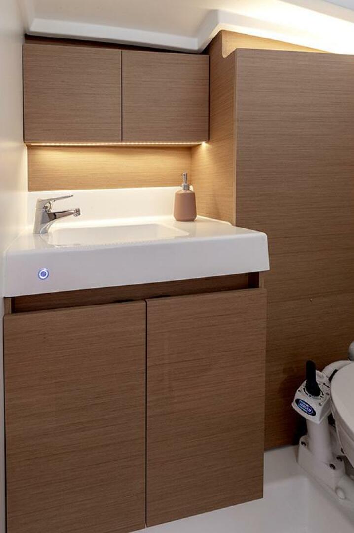 - Quiet flush electric toilet (aft)