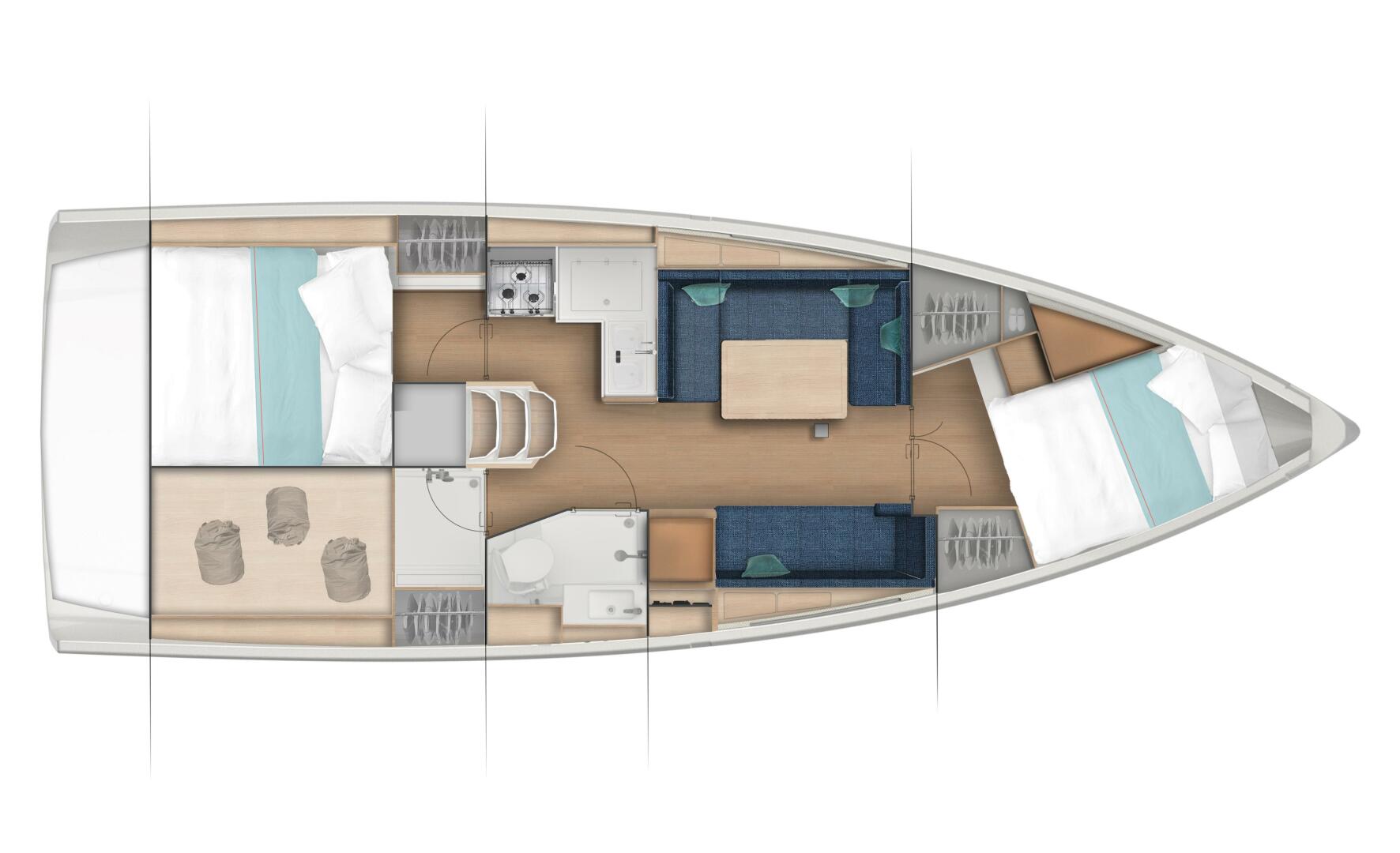 - Comfortable 2-cabin, 1-head layout