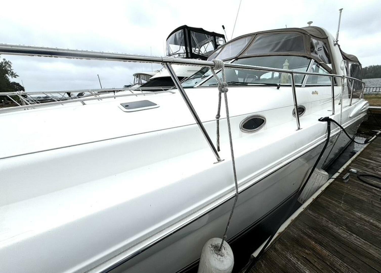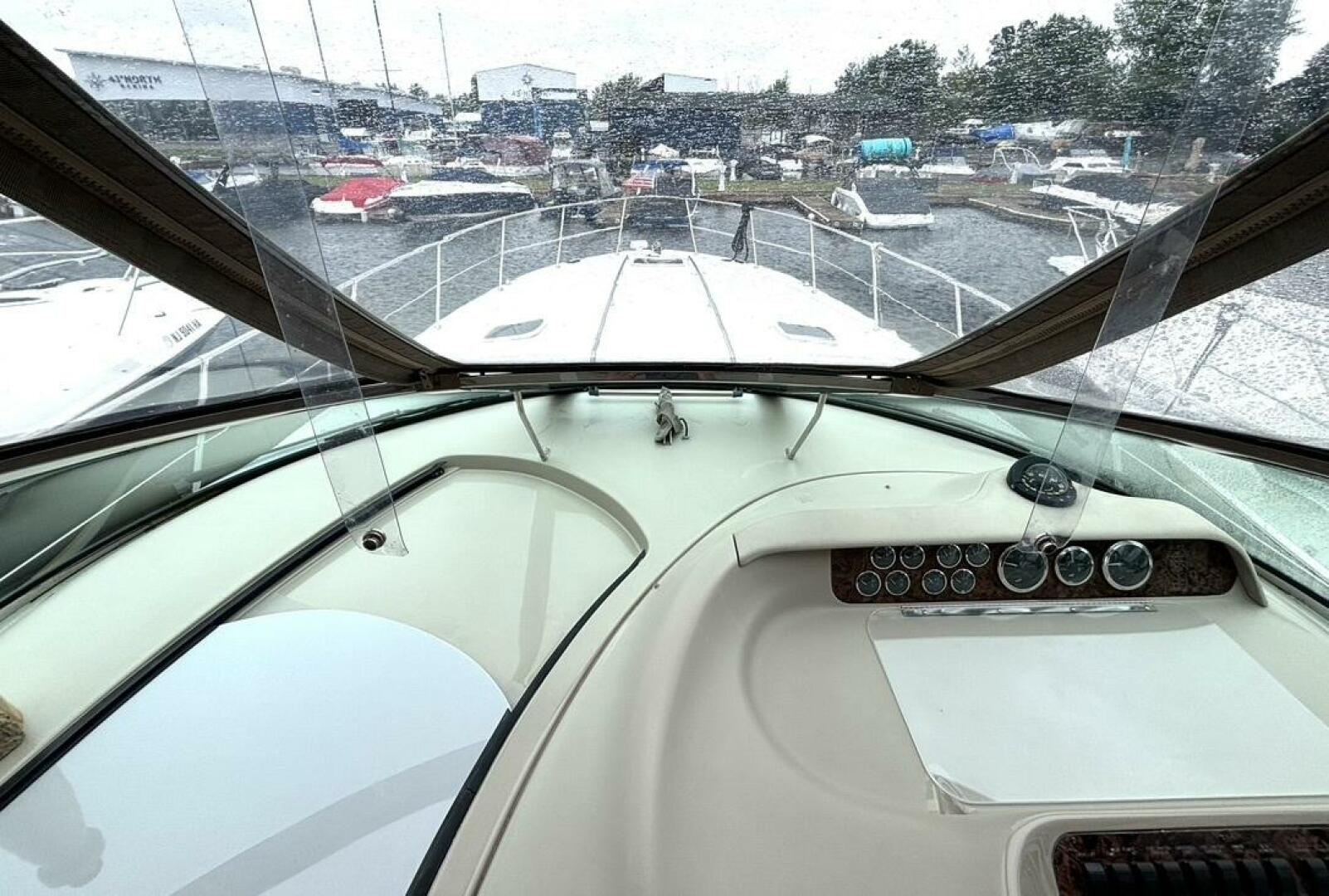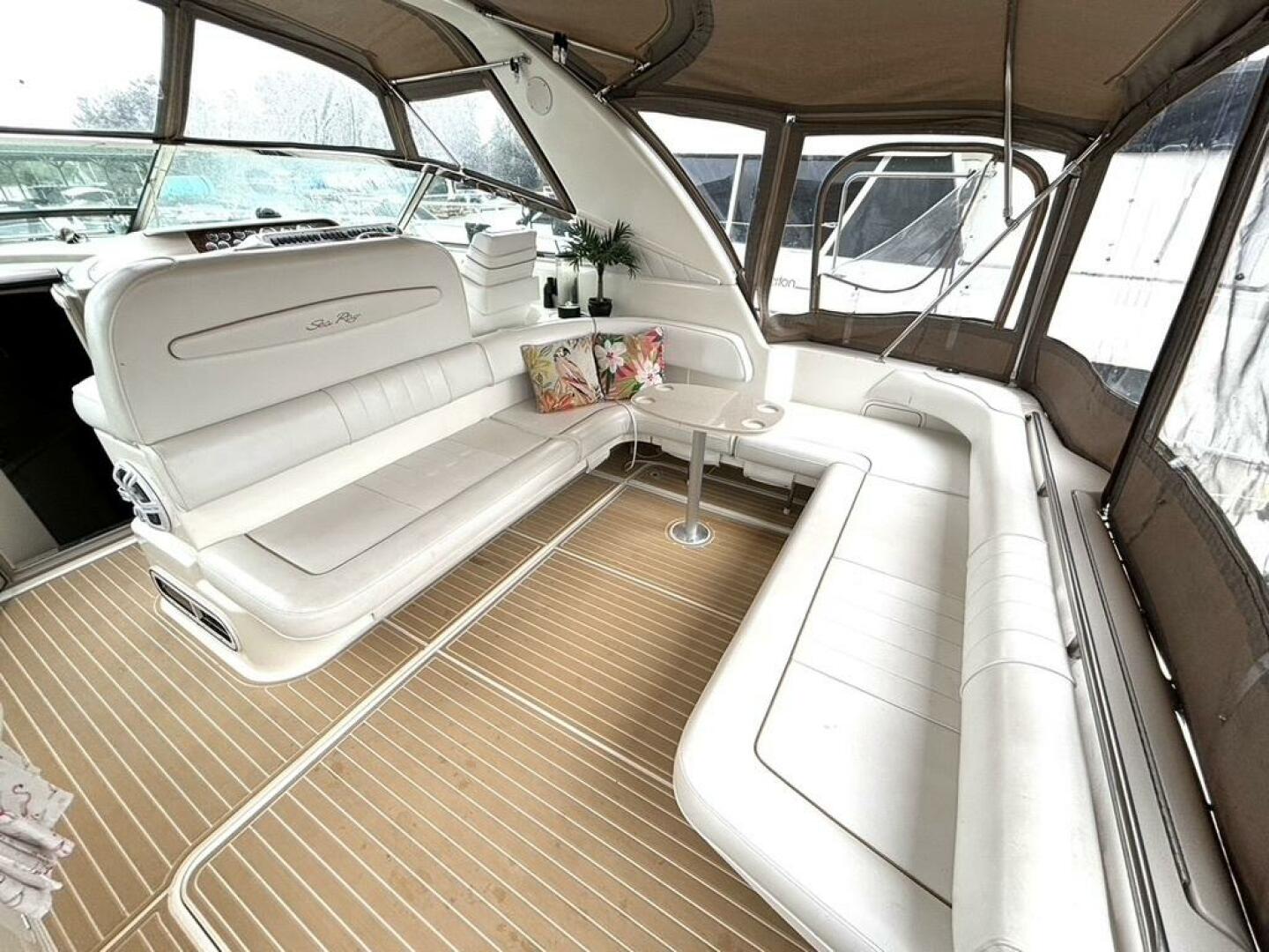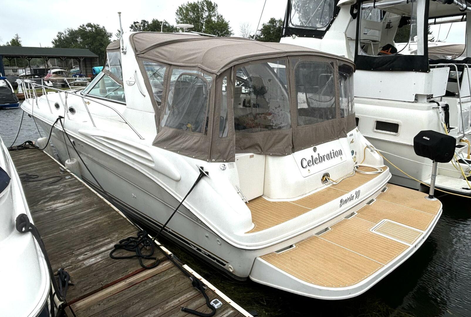 This 400 Sundancer is for those that are looking for a beautifully equipped boat, that is perfect for a weekender or extended stay vessel. Coming from Sea Ray's popular and beloved line, this beauty is in the water and ready to be enjoyed for the rest of the summer and beyond! She has been extremely well taken care of by the sellers and pride of ownership certainly shows. From the The new canvas and SeaDek to the Pioneer/Fusion stereo system and upgraded chartplotters, there have been some very nice upgrades done as well. Entering into the vessel you are greeted by Sea Ray's famous lounging cockpit where there is a ton of living and entertainment space, all thanks to the wrap around lounge seating with removable table. You also have direct access to a wet bar, mini fridge and plenty of storage. Venture up into the helm area and you will find a captain's chair as well as a full bench seat for additional occupancy. Upgraded electronics, stereo controls, and clear views of what's ahead make this a comfortable and enjoyable operating area. When you find your way into the salon, you are greeting by a beautifully equipped galley with full refrigerator and separate freezer, 3 burner stove, microwave, coffee maker and tons of storage! The curved sofa with table can act as a dinette or can convert to additional sleeping accommodations. The aft cabin berth acts as a conversation or living area by day and converts to a double bed at night, with closet space and private head! Privacy door separates the entire space from the rest of the salon. Finally, the master stateroom has a full size pedestal bed with 2 cedar lined hanging closets, plenty of storage, TV and direct access to the master head with full standup shower. The interior is finished off with added amenities such as heat and A/C, central vac, and upgraded speakers, all able to be powered by the onboard generator. The twin 454 Horizon MerCruiser V-Drives will power you around reliably every time!