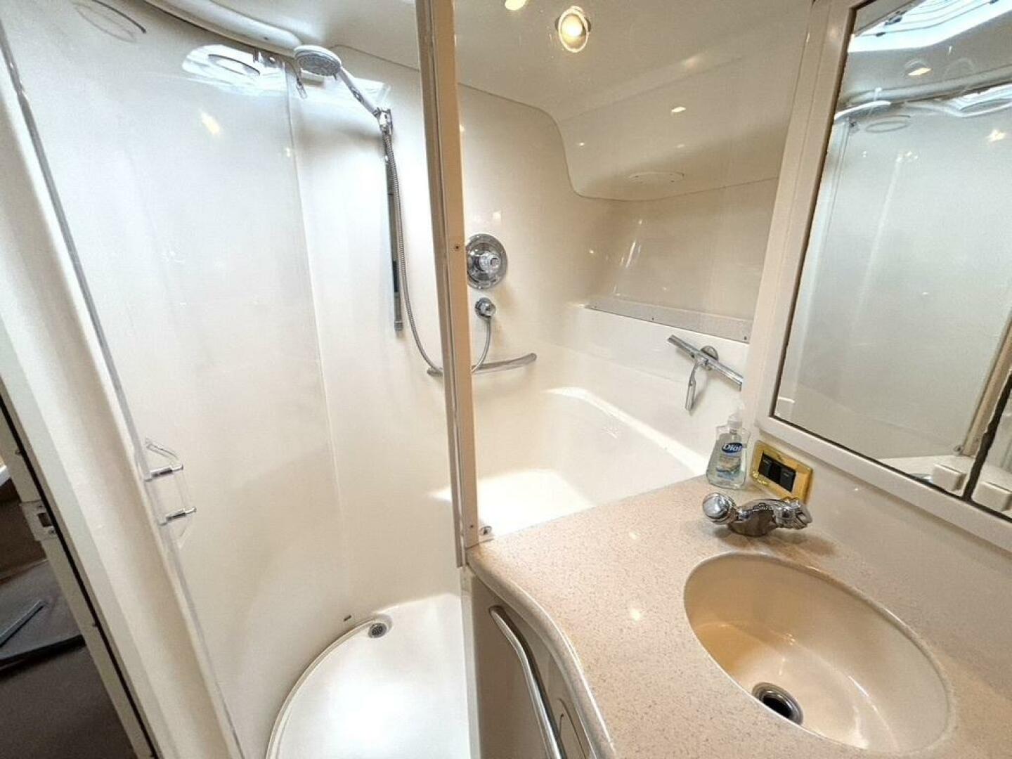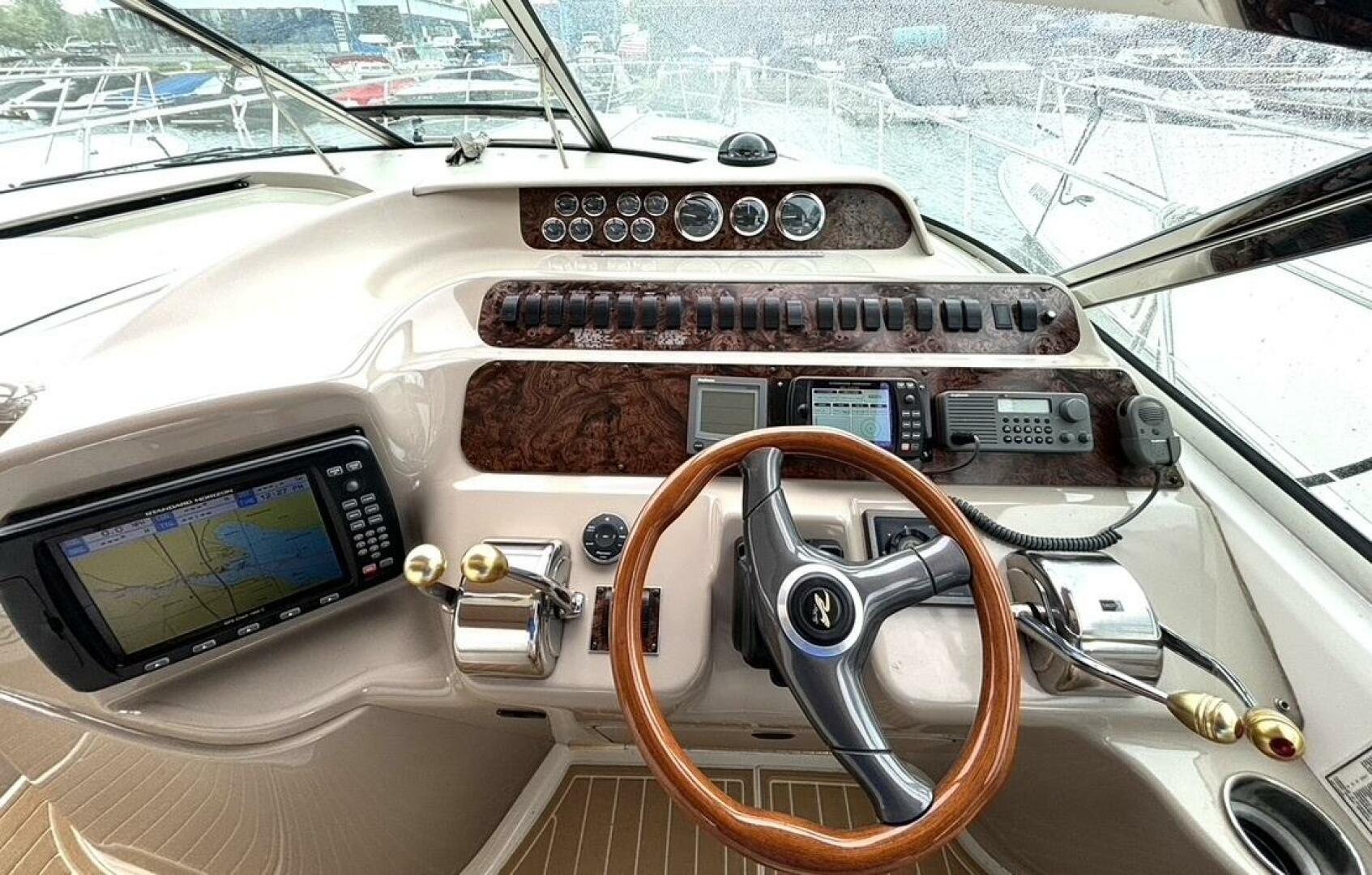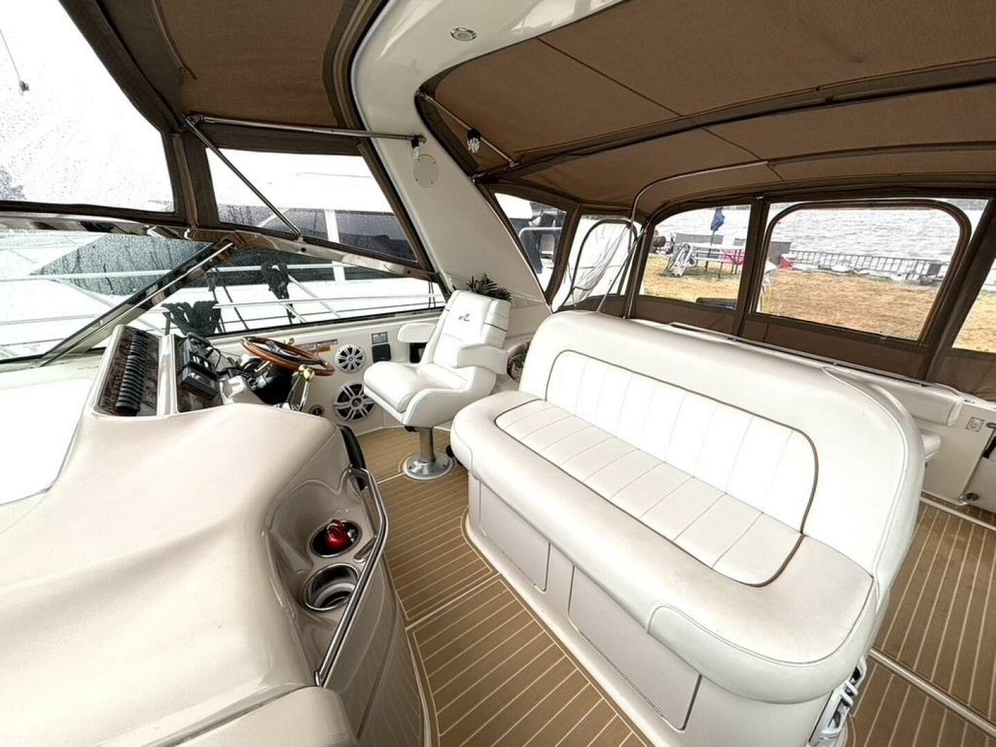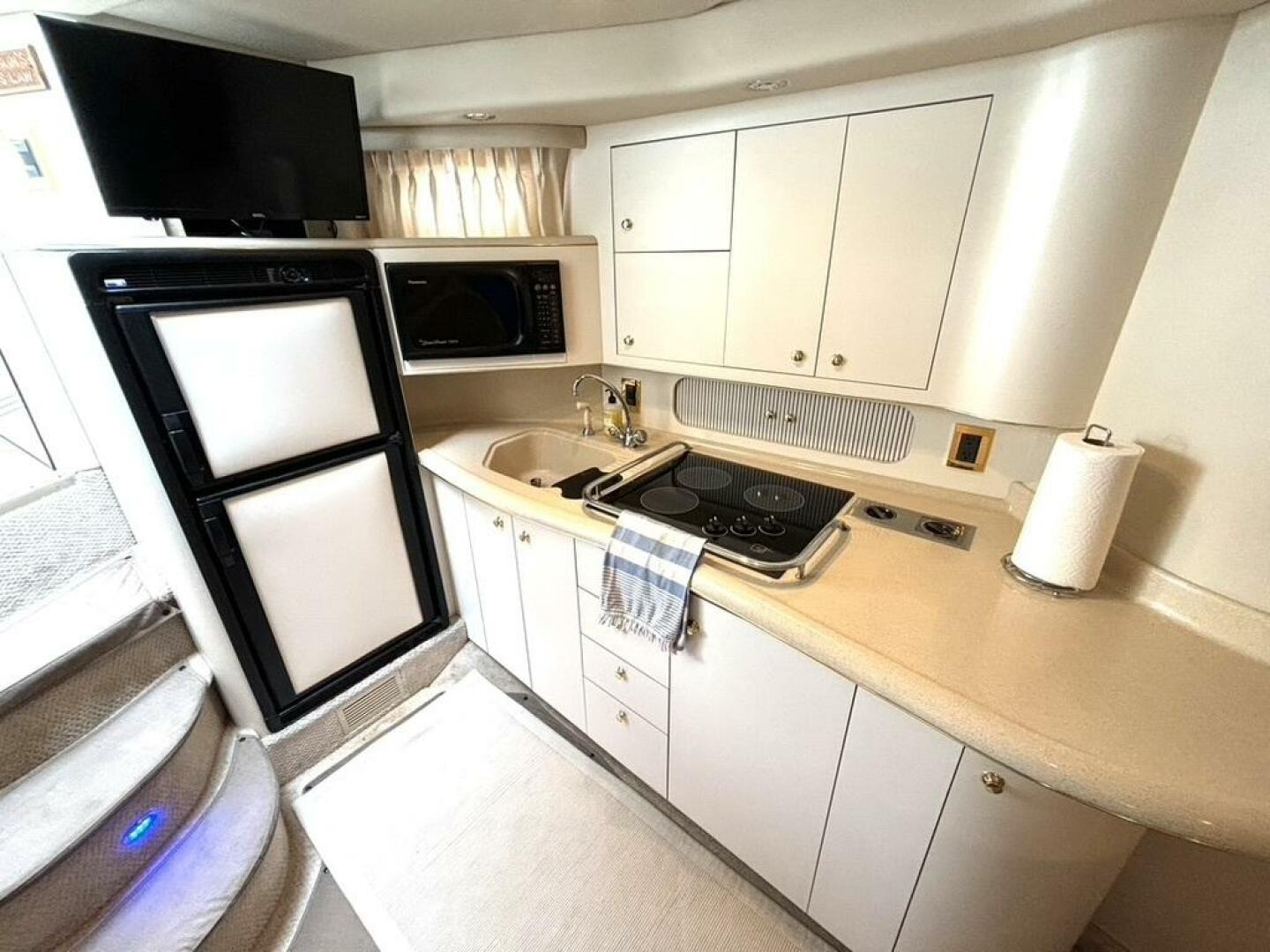 This 400 Sundancer is for those that are looking for a beautifully equipped boat, that is perfect for a weekender or extended stay vessel. Coming from Sea Ray's popular and beloved line, this beauty is in the water and ready to be enjoyed for the rest of the summer and beyond! She has been extremely well taken care of by the sellers and pride of ownership certainly shows. From the The new canvas and SeaDek to the Pioneer/Fusion stereo system and upgraded chartplotters, there have been some very nice upgrades done as well. Entering into the vessel you are greeted by Sea Ray's famous lounging cockpit where there is a ton of living and entertainment space, all thanks to the wrap around lounge seating with removable table. You also have direct access to a wet bar, mini fridge and plenty of storage. Venture up into the helm area and you will find a captain's chair as well as a full bench seat for additional occupancy. Upgraded electronics, stereo controls, and clear views of what's ahead make this a comfortable and enjoyable operating area. When you find your way into the salon, you are greeting by a beautifully equipped galley with full refrigerator and separate freezer, 3 burner stove, microwave, coffee maker and tons of storage! The curved sofa with table can act as a dinette or can convert to additional sleeping accommodations. The aft cabin berth acts as a conversation or living area by day and converts to a double bed at night, with closet space and private head! Privacy door separates the entire space from the rest of the salon. Finally, the master stateroom has a full size pedestal bed with 2 cedar lined hanging closets, plenty of storage, TV and direct access to the master head with full standup shower. The interior is finished off with added amenities such as heat and A/C, central vac, and upgraded speakers, all able to be powered by the onboard generator. The twin 454 Horizon MerCruiser V-Drives will power you around reliably every time!