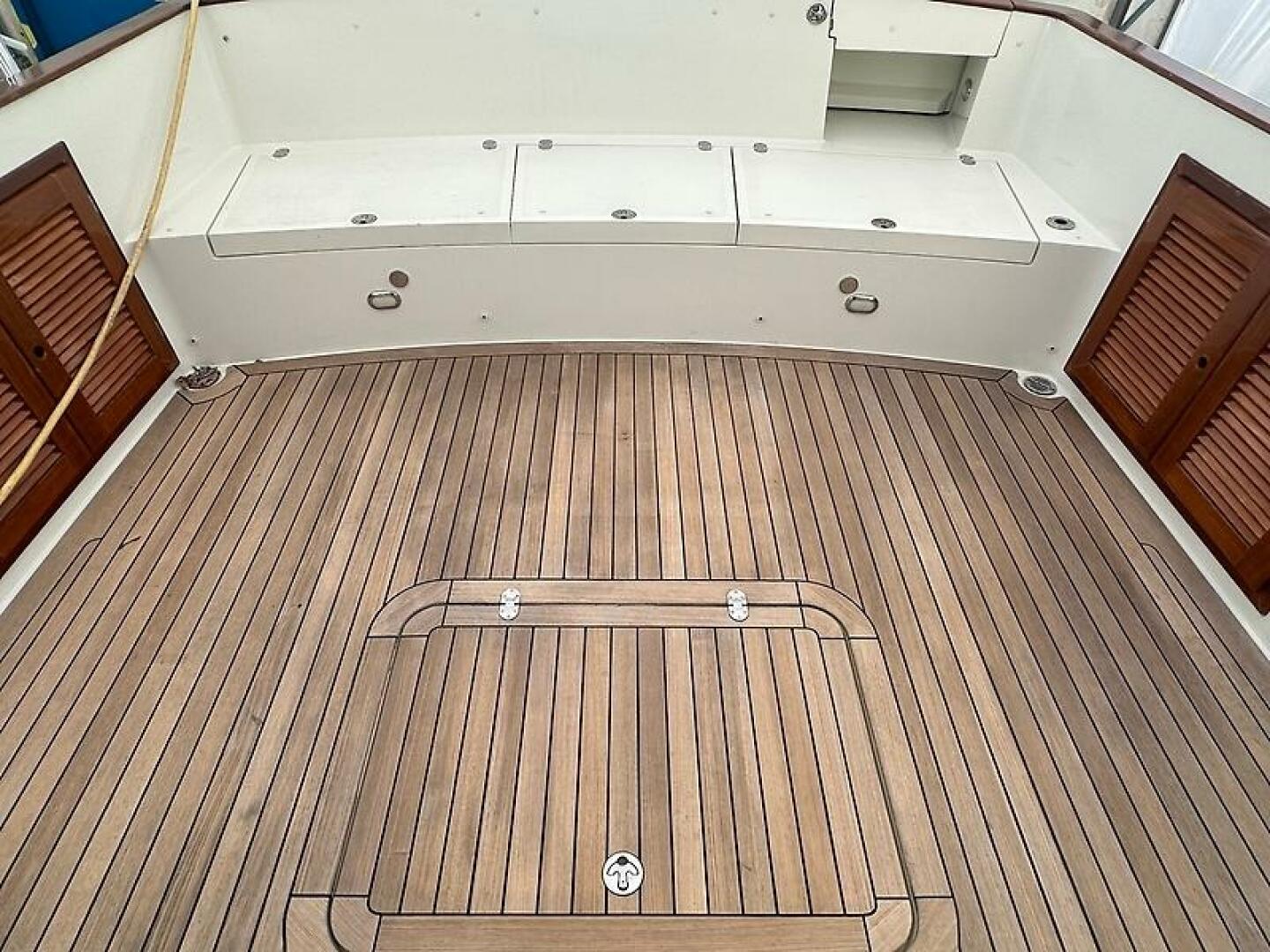 - Teak decks in cockpit, pilot house, and on aft swim step