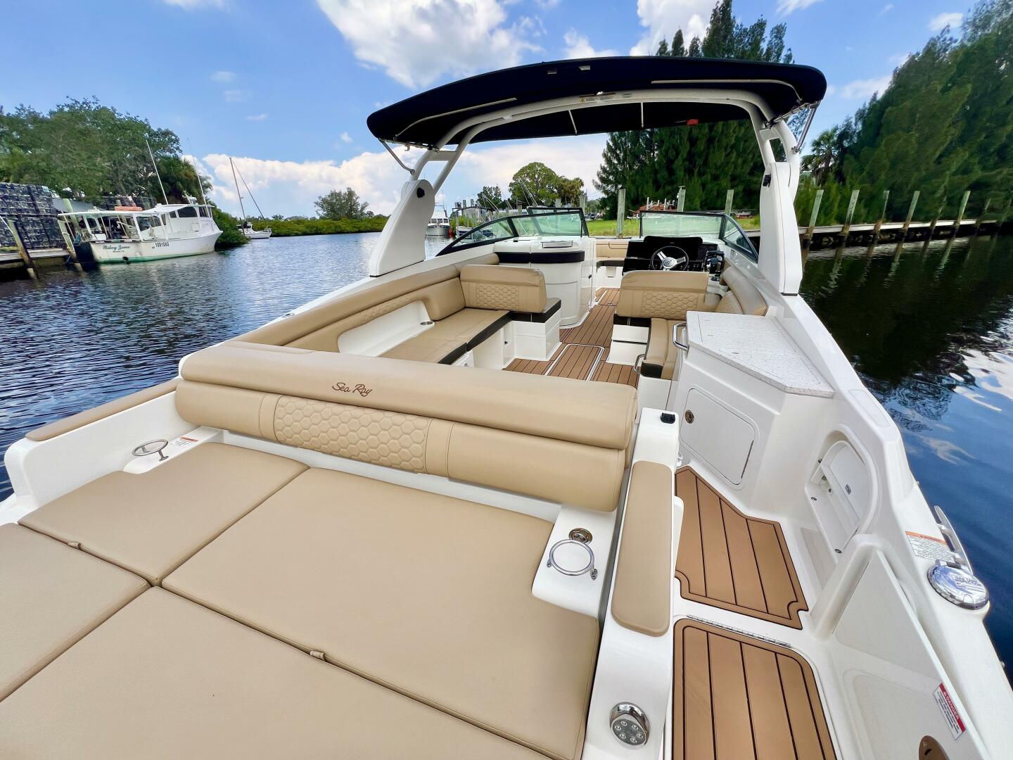 This SDX is powered by twin white 250HP Mercury outboards (not underpowered with 200hp motors) with only 238 hours. This premium deck boat combines luxury, performance, and generous passenger capacity, making it ideal for entertaining family and friends on the water. The SDX 290 features plush wraparound seating, a roomy head compartment, a sleek helm with modern electronics, and abundant storage throughout. With its deep-V hull, it delivers a smooth, confident ride, whether you’re cruising, island hopping, or towing water toys. Meticulously maintained with low hours, this boat offers an excellent opportunity to own a like-new Sea Ray at a fraction of the cost of new.