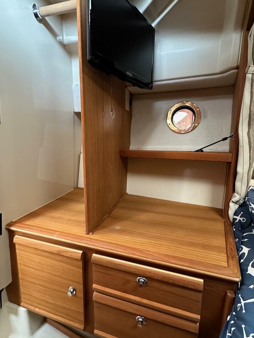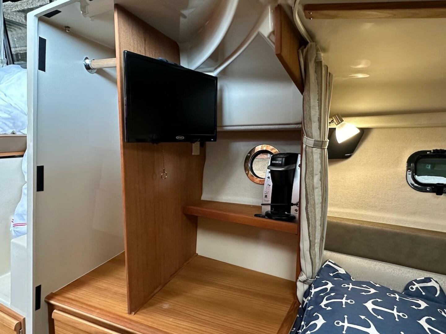 - TV - 19” TV/DVD player, HD air antenna. Installed by Cabin forward, so can be angled toward the bed or towards