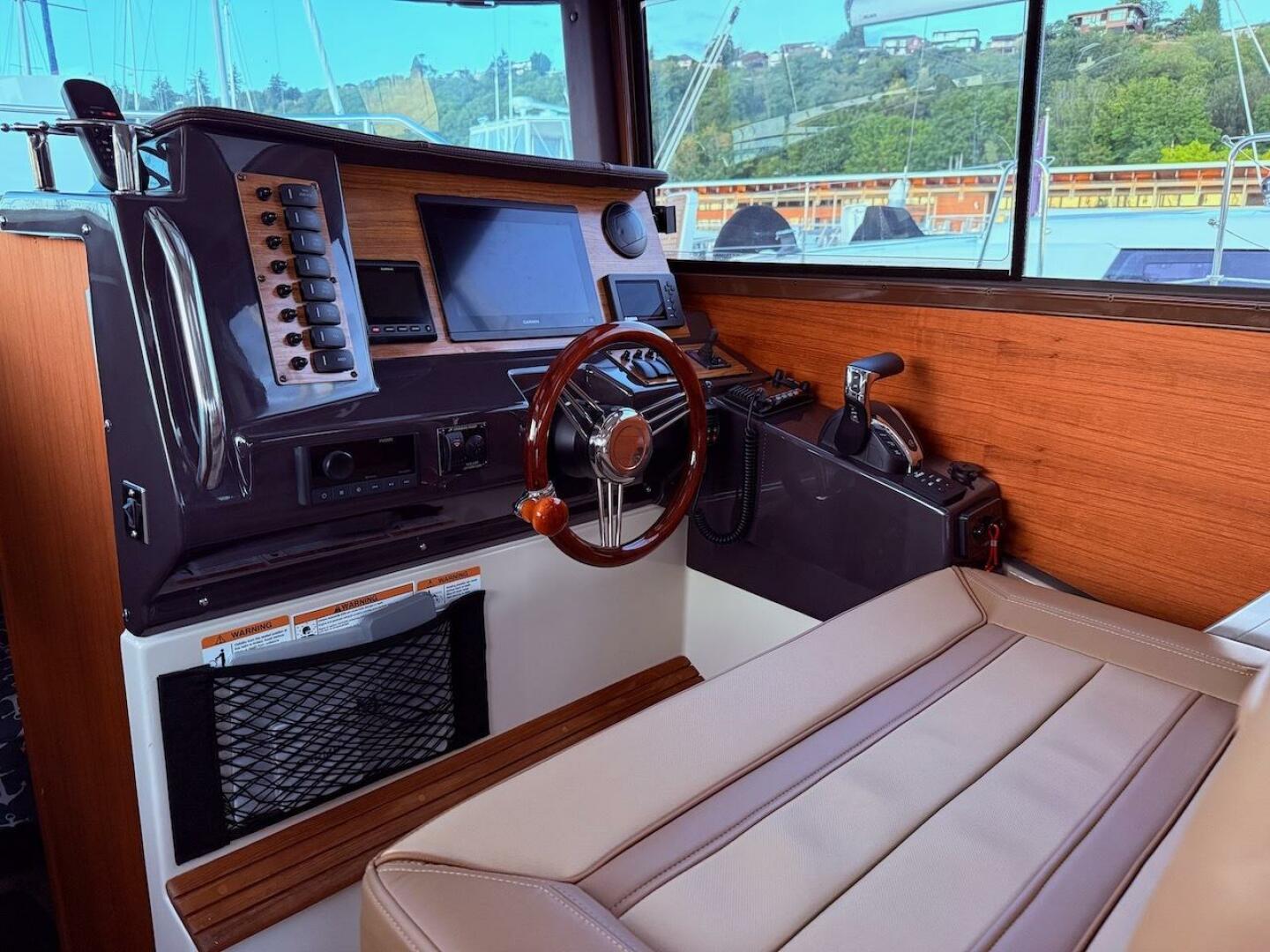 - Helm Wheel – Stainless Steel with varnish wood handle, and knob for quick handling Shifter – Yamaha, controls for engine up and down, Neutral Hold