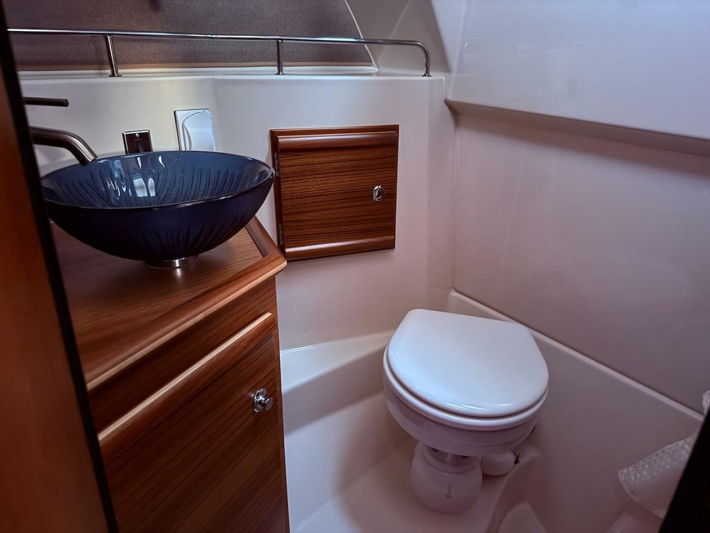 - Enclosed Head - with Shower & Electric Toilet Sitting for 4 in cockpit fold-down benches