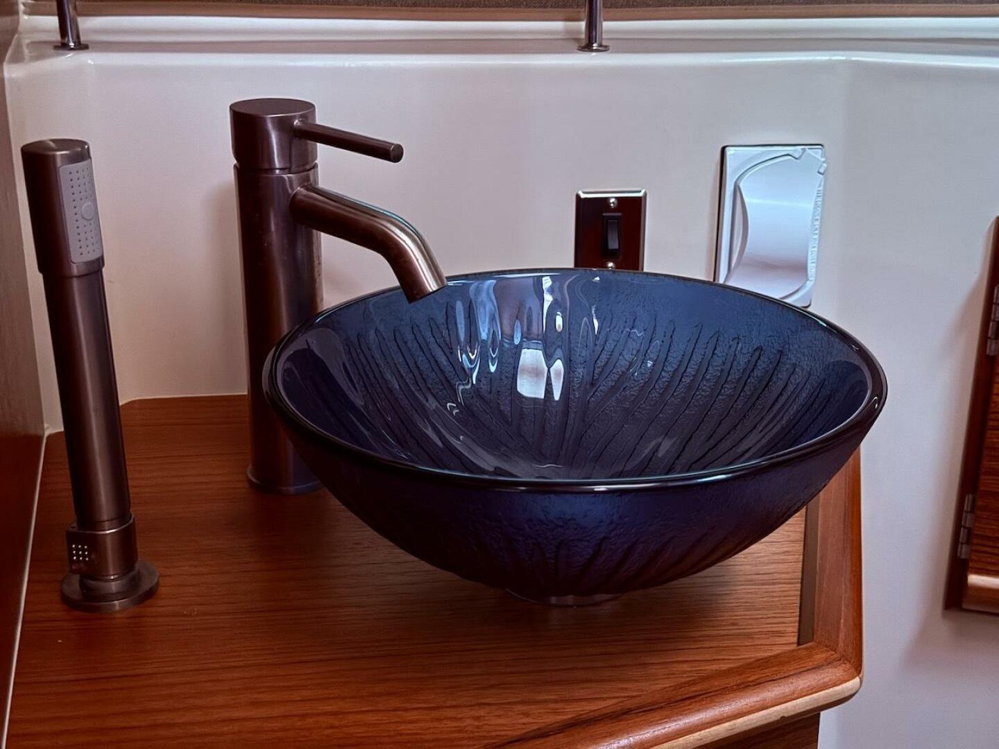 - Electric Marine Toilet Sink – Blue Glass bowl