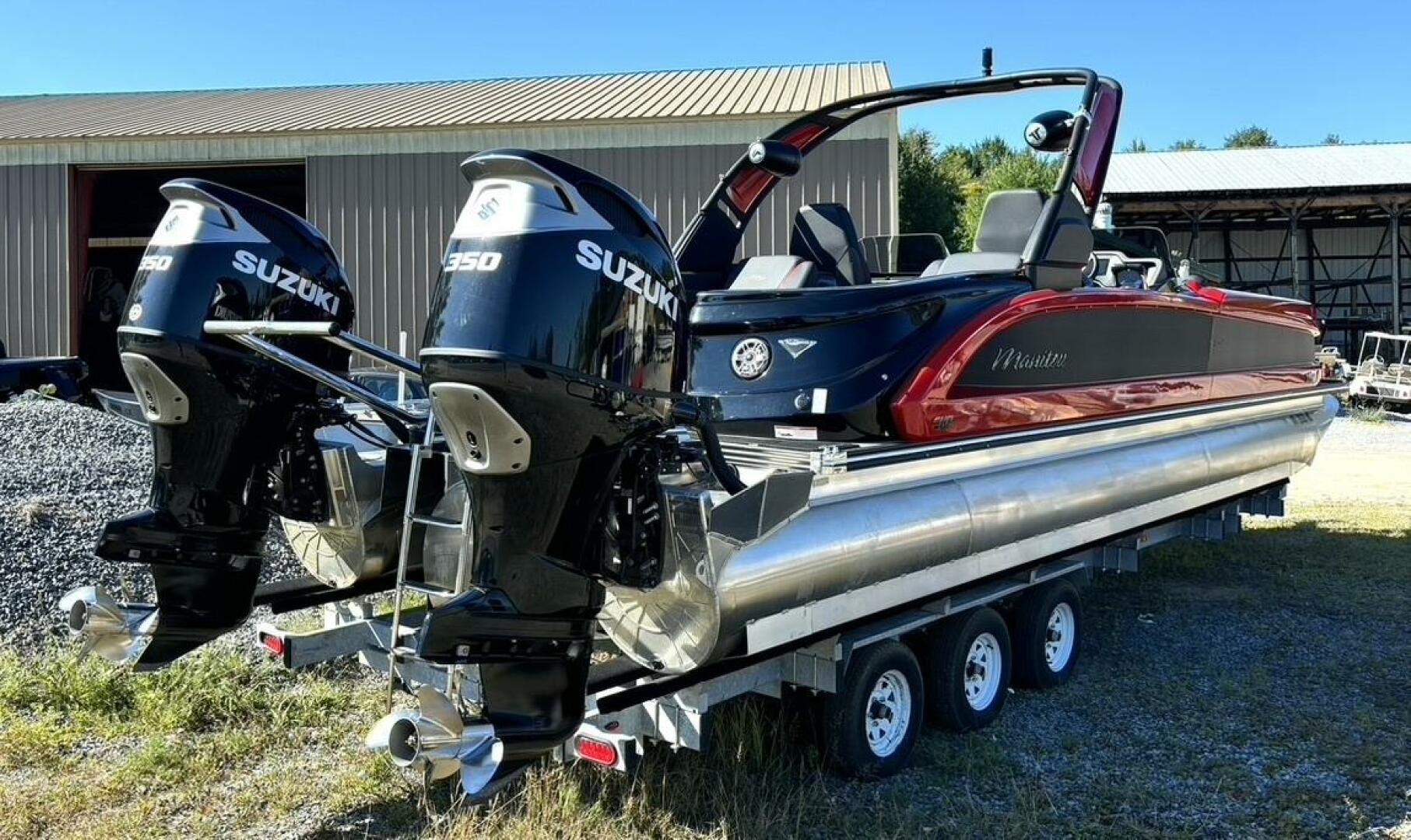 This absolute beast of a tritoon can be yours for thousand off of new! With a recent massive price reduction, she is priced to move and can still be used for these end of season beautiful days! This XT 27 SRW is a one owner vessel with very low hours and has been used in fresh water only. The twin Suzuki 350s with contra-rotating propellers will enhance the performance of the vessel and get you to your destination in no time at all! And you will get there in comfort thanks to the premium interior seating with luxury contoured bench seats and adjustable captain's chairs. At the helm, you will love the control during docking and maneuvering thanks to the joystick control and digital display gauges. The twin Garmin display screens will help guide your way and keep you up to speed on operating standards. While tied up at the sandbar, blast some tunes with the JL Audio MediMaster stereo and through the plethora of speakers ranging from on deck, to the arch speakers and all the way to aft facing transom speakers. The party will certainly be heard from all angles and you may even pick up some more passengers on the way. Good thing there is room for up to 15! Don't worry about draining the batteries either with the onboard marine battery charger and separate cranking battery. And if you don't get back until after dark, the LED docking, courtesy and interior lighting will keep you lit the whole way! If you want to have a ton of fun out on the water while being able to move around freely, then this may be the perfect boat for you!