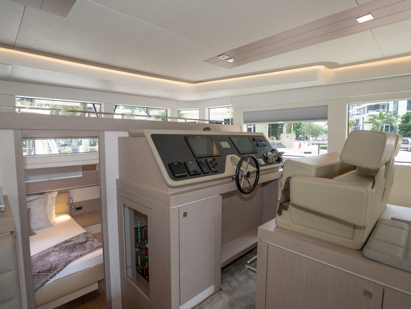 This helm station allows the captain to remain fully connected to the onboard experience, offering the perfect balance of control and integration with the yacht’s living areas.