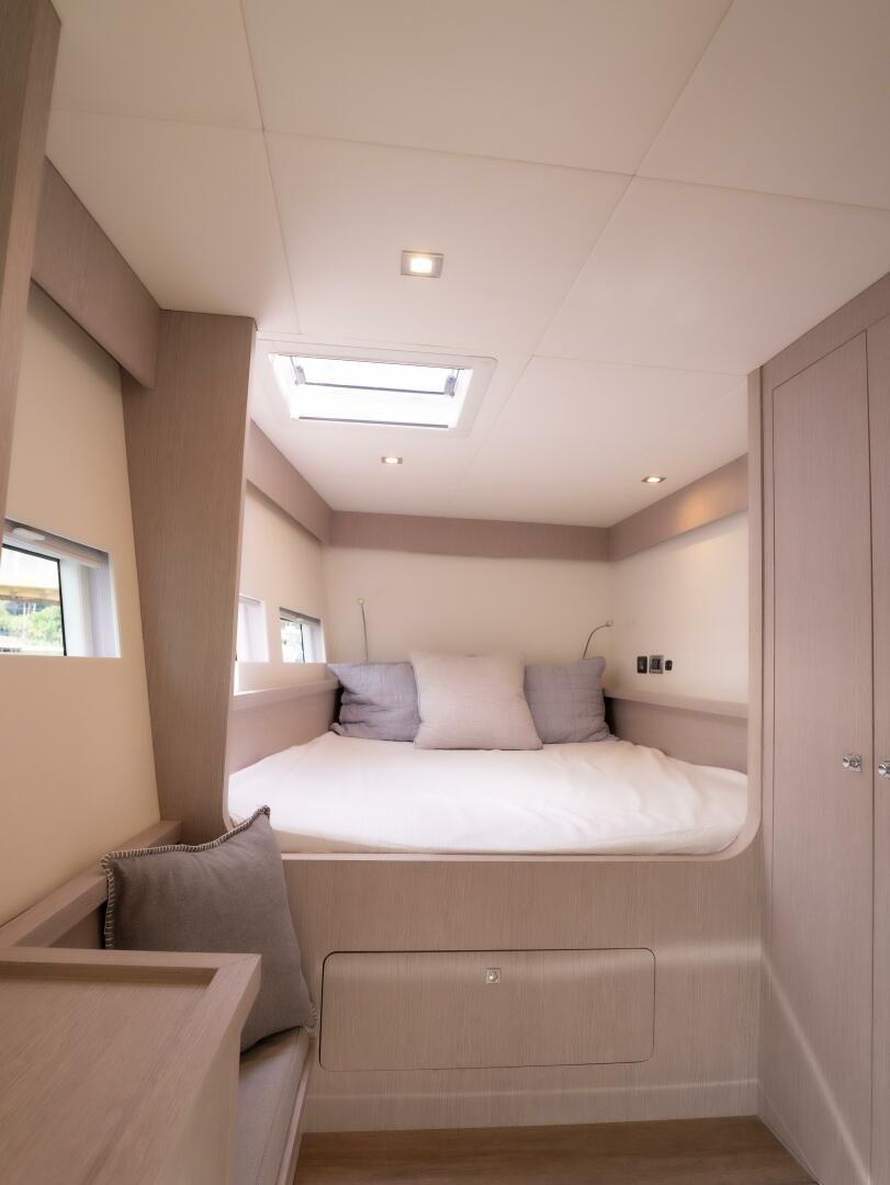 Located in the forward section of the port hull, this guest cabin offers privacy, comfort, and its own ensuite — making it an ideal retreat for family or VIP guests.