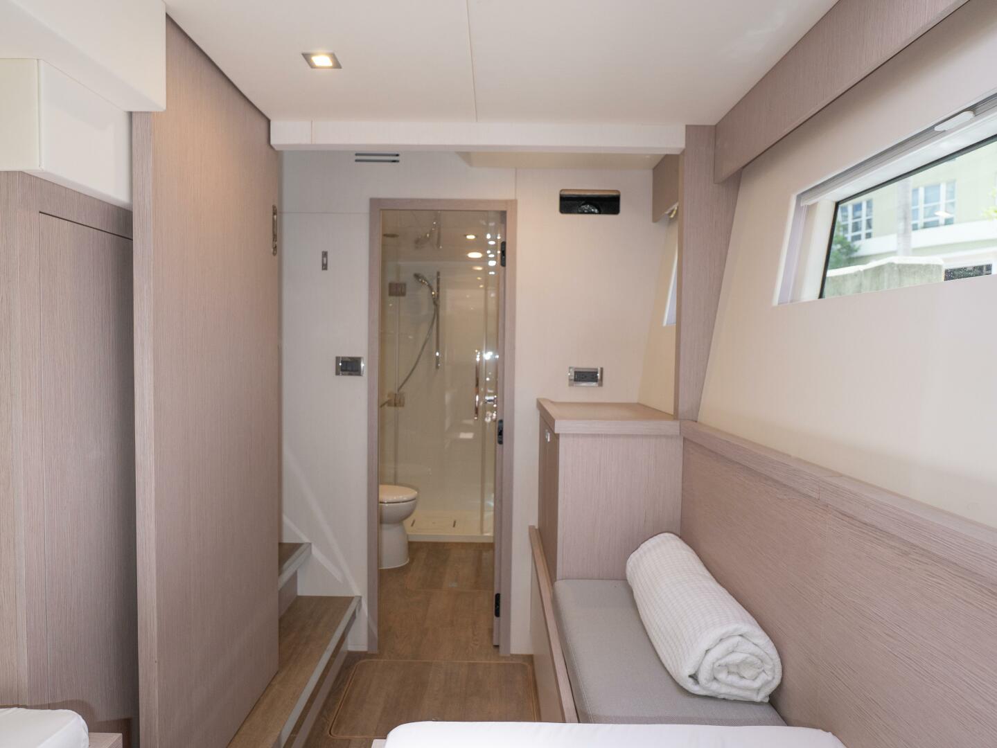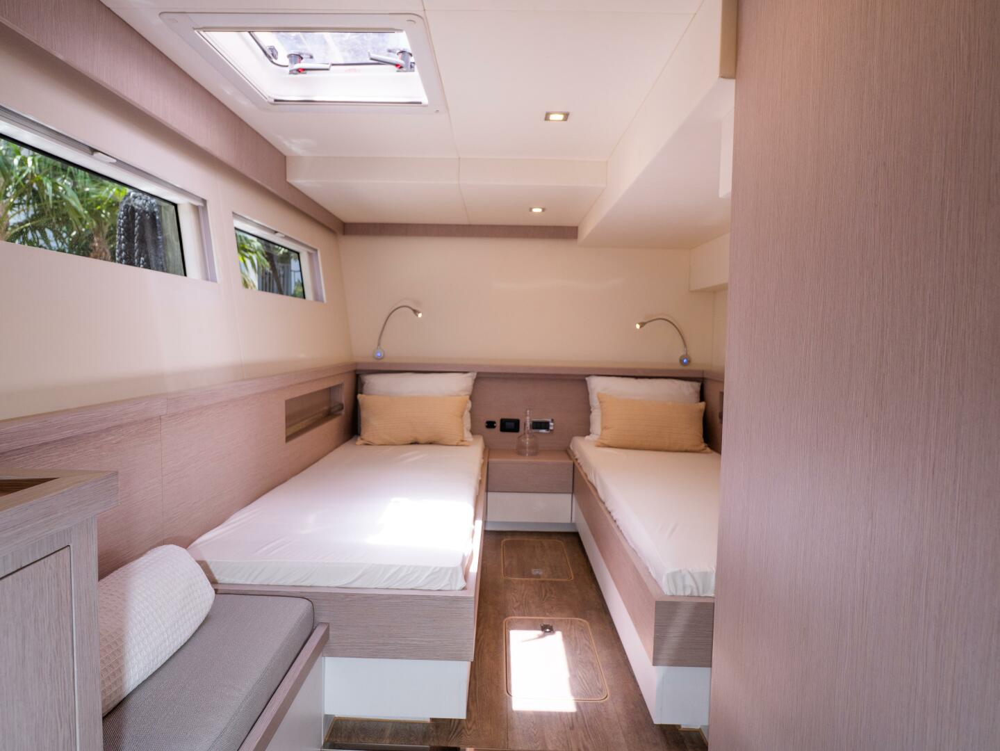 Nestled in the aft section of the port hull, this guest cabin offers flexible accommodations with its twin berth layout and direct access to a private ensuite.