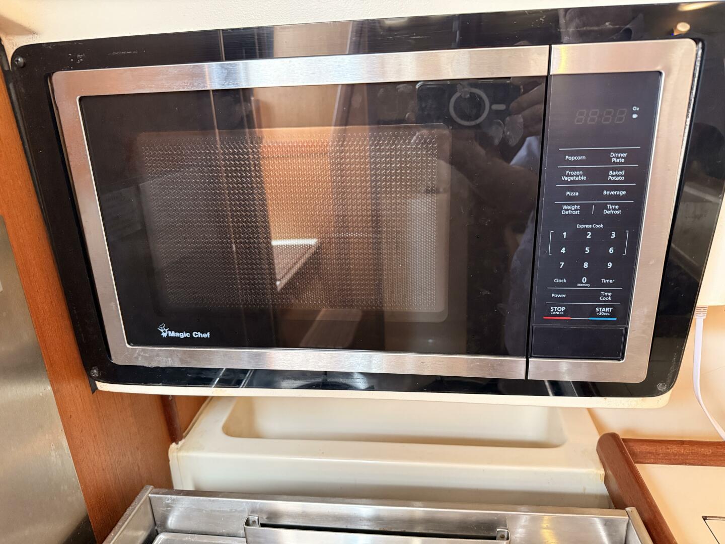 - The galley includes a 2 burner propane stove with oven, microwave oven (2025) as well as hot and cold pressurized water and a top loading refrigerator.
