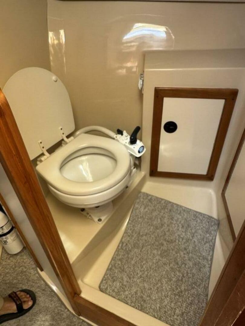 Accommodations; Sleeps 4, a large V-berth, next aft to port is the galley and to starboard is the enclosed head, Convertible Dinette, Aft to port is a quarter berth to sleep 1. There are 8 opening ports and one overhead hatch for ventilation. Solid Downeast inspired construction with a dual purpose design which balances rugged offshore fishing with comfortable cruising for a couple.