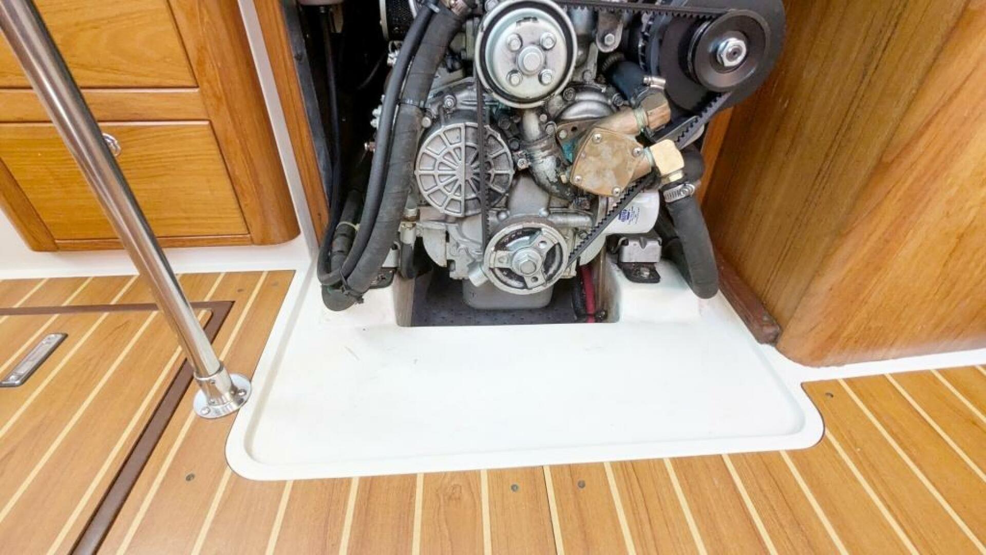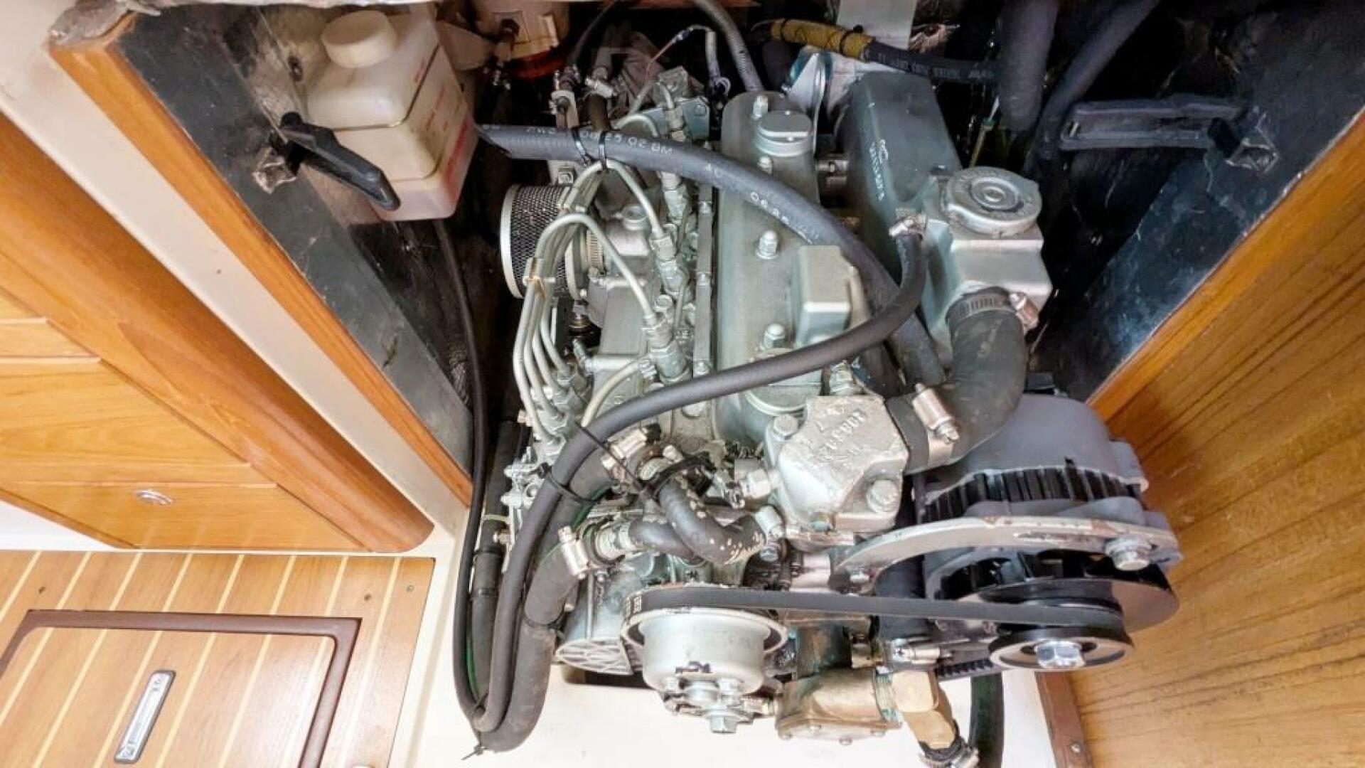 35hp Universal 4M35 four-cylinder diesel engine. A reliable Kobota-based engine that has been well-maintained. With a spare prop.