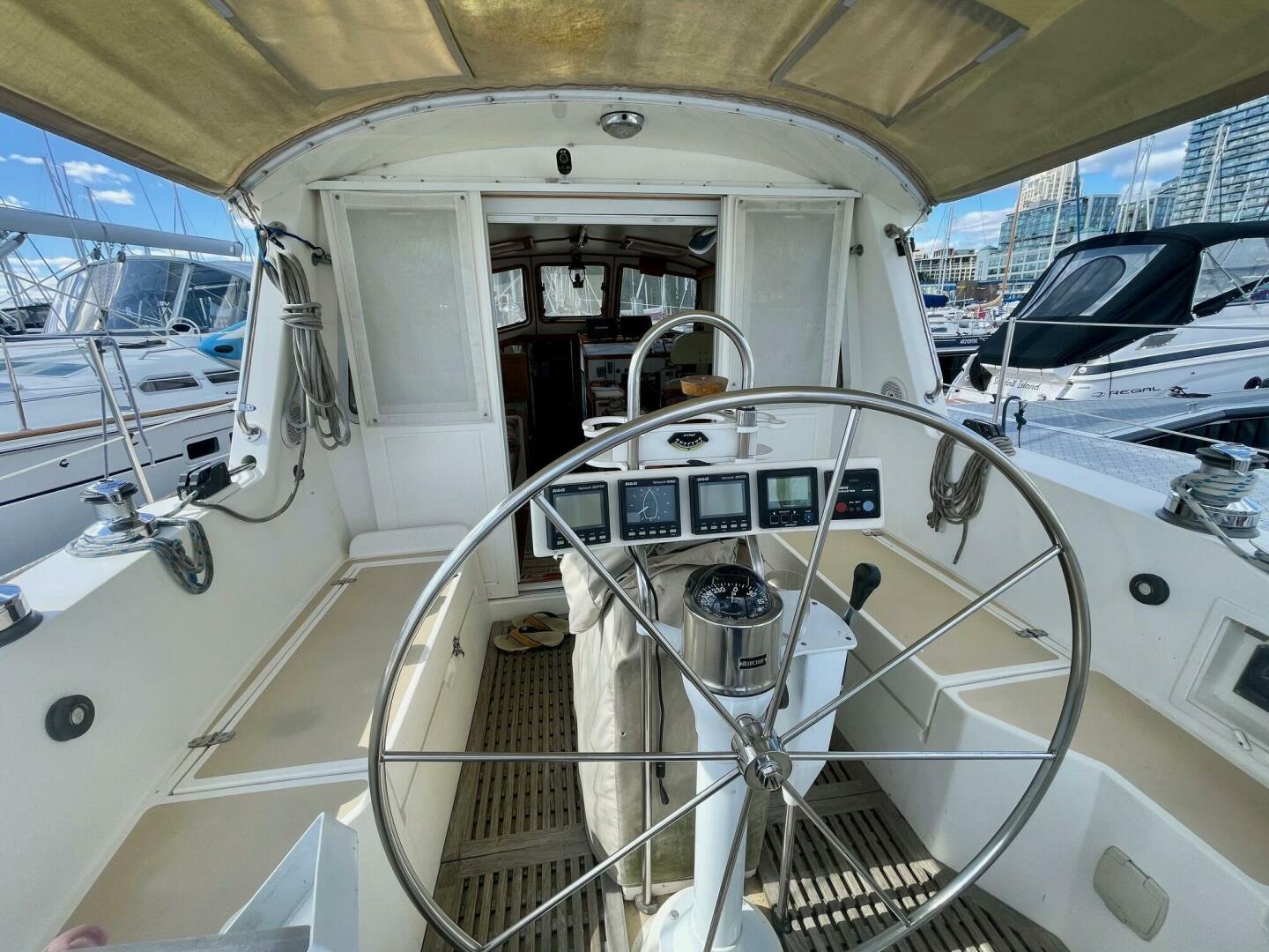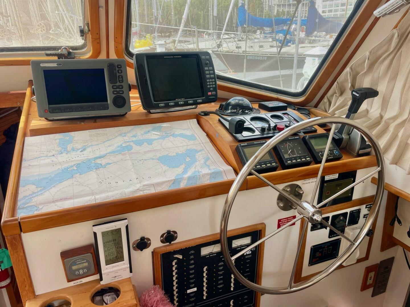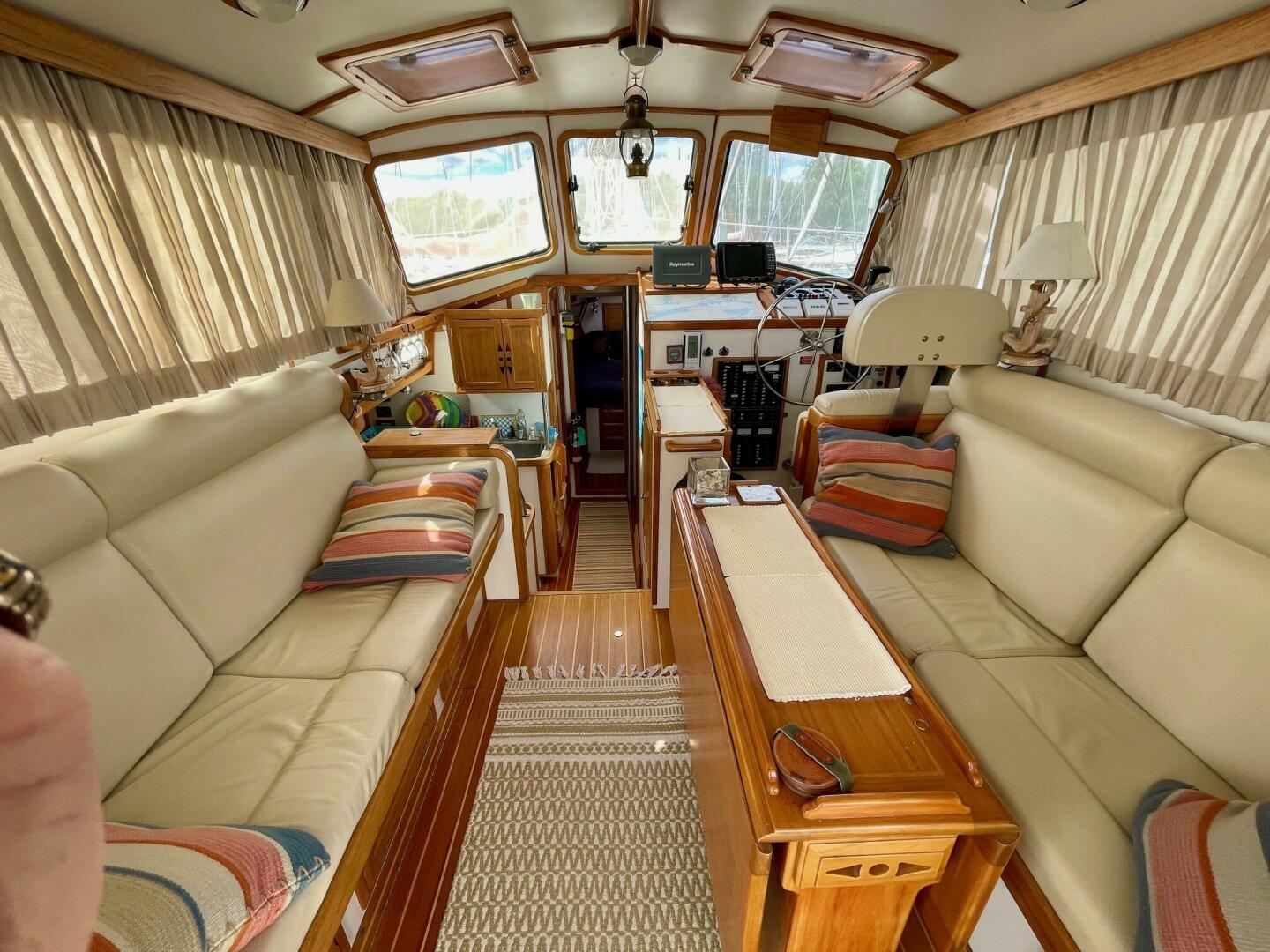 One of the most distinguishing features of the Northeast 400 is its pilothouse layout. Unlike many sailboats that feel dark and cave-like below deck, this yacht’s raised saloon is bright and spacious, with large windows that offer excellent visibility and allow natural light to flood the interior. This space doubles as a second helm station, meaning the boat can be comfortably piloted from inside during inclement weather—making it ideal for extended cruising in varied climates.