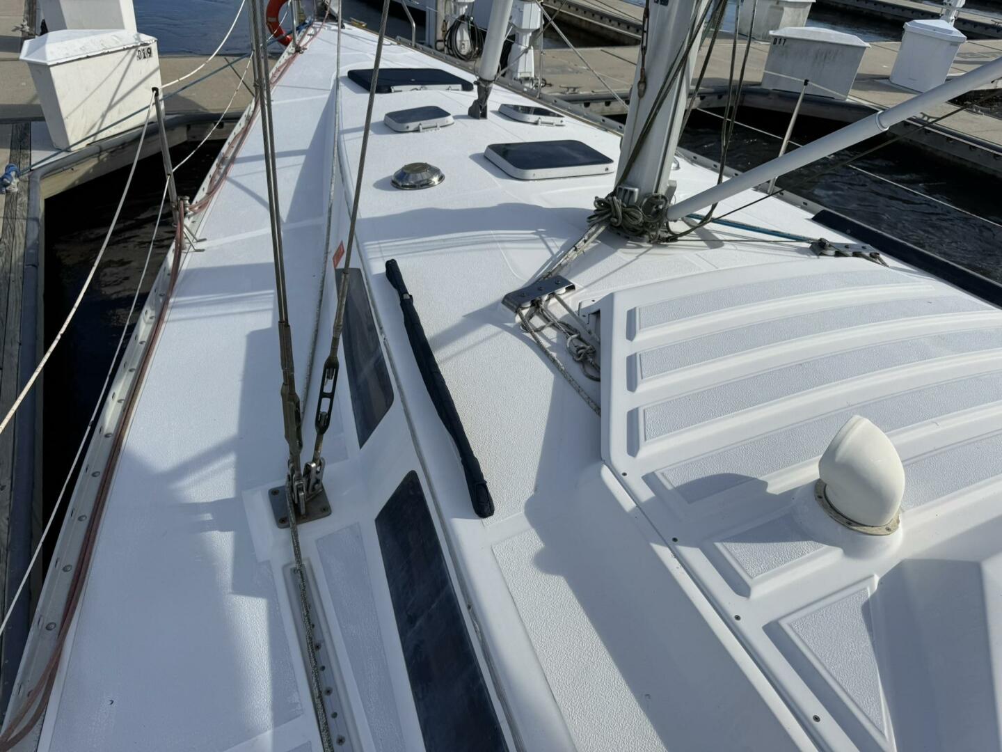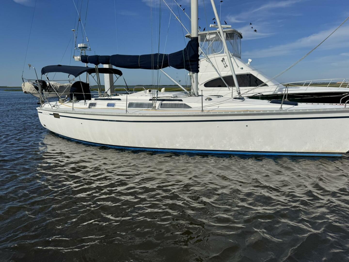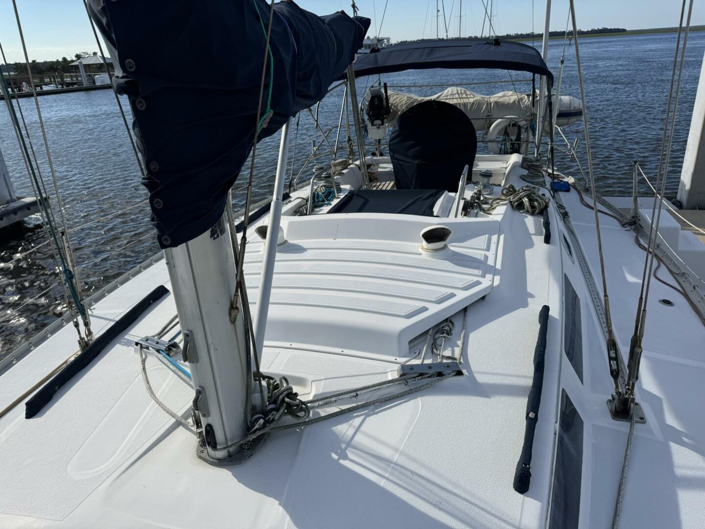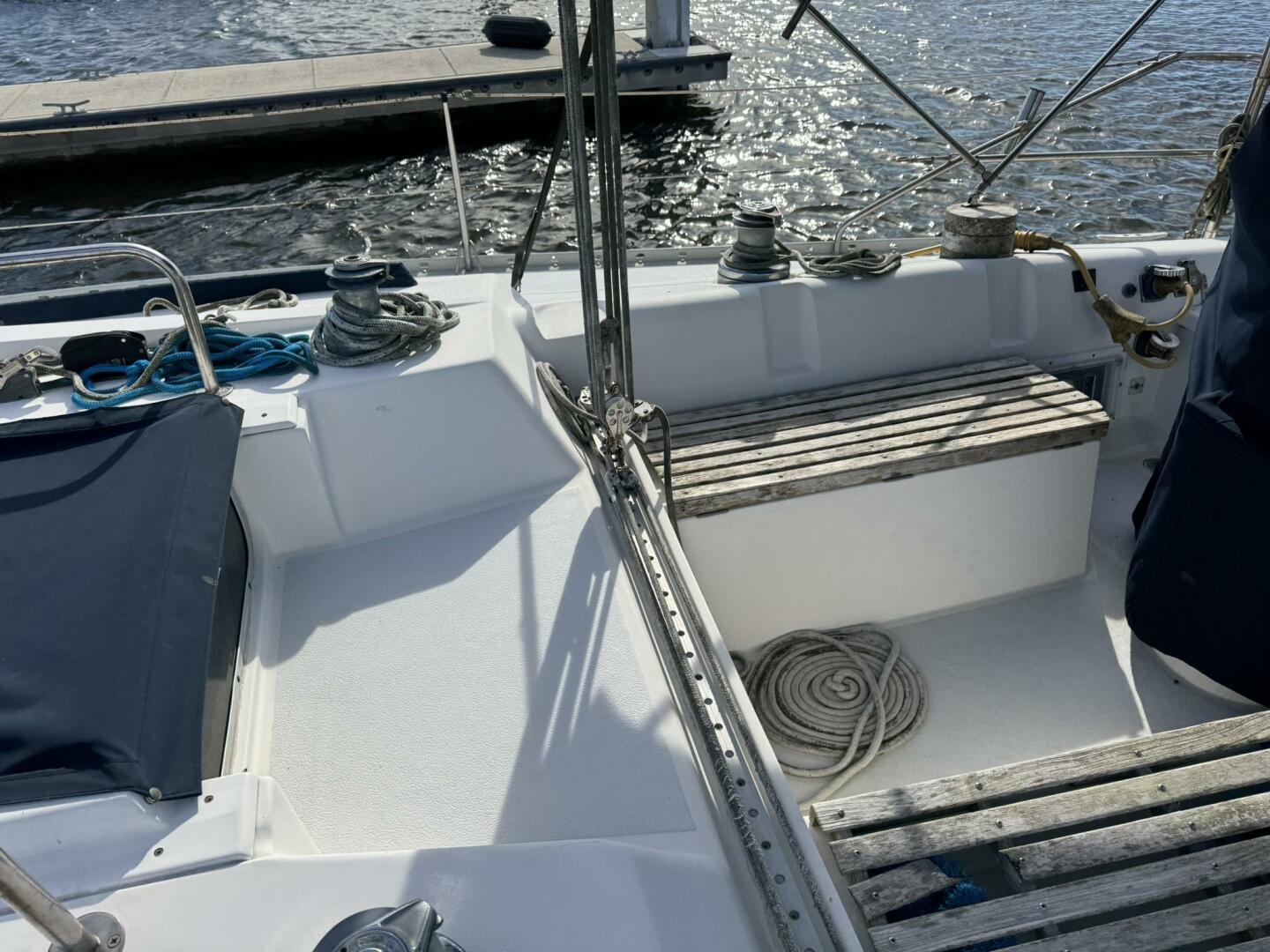 | Notable Upgrades: Notable Upgrades 2015 Yanmar 54‑hp repower (~602 hrs) Garmin echoMAP 74‑series chartplotter; radar; autopilot 10' Mercury 310 Hypalon dinghy (white) with 9.9‑hp Mercury four‑stroke and fuel tank Cockpit bench cushions and Bimini Rail‑mounted propane grill Scuba tank with weight belt/weights and 50‑ft high‑pressure air hose with regulator Dehumidifier Spares: belts, impeller, fuel filters; tool kit 12 PFDs; handheld spotlight Full galley kit (cookware, dishes, cups, glasses, cutlery) |