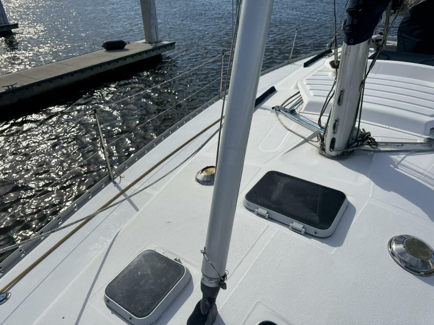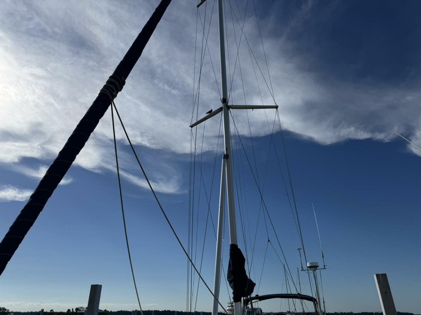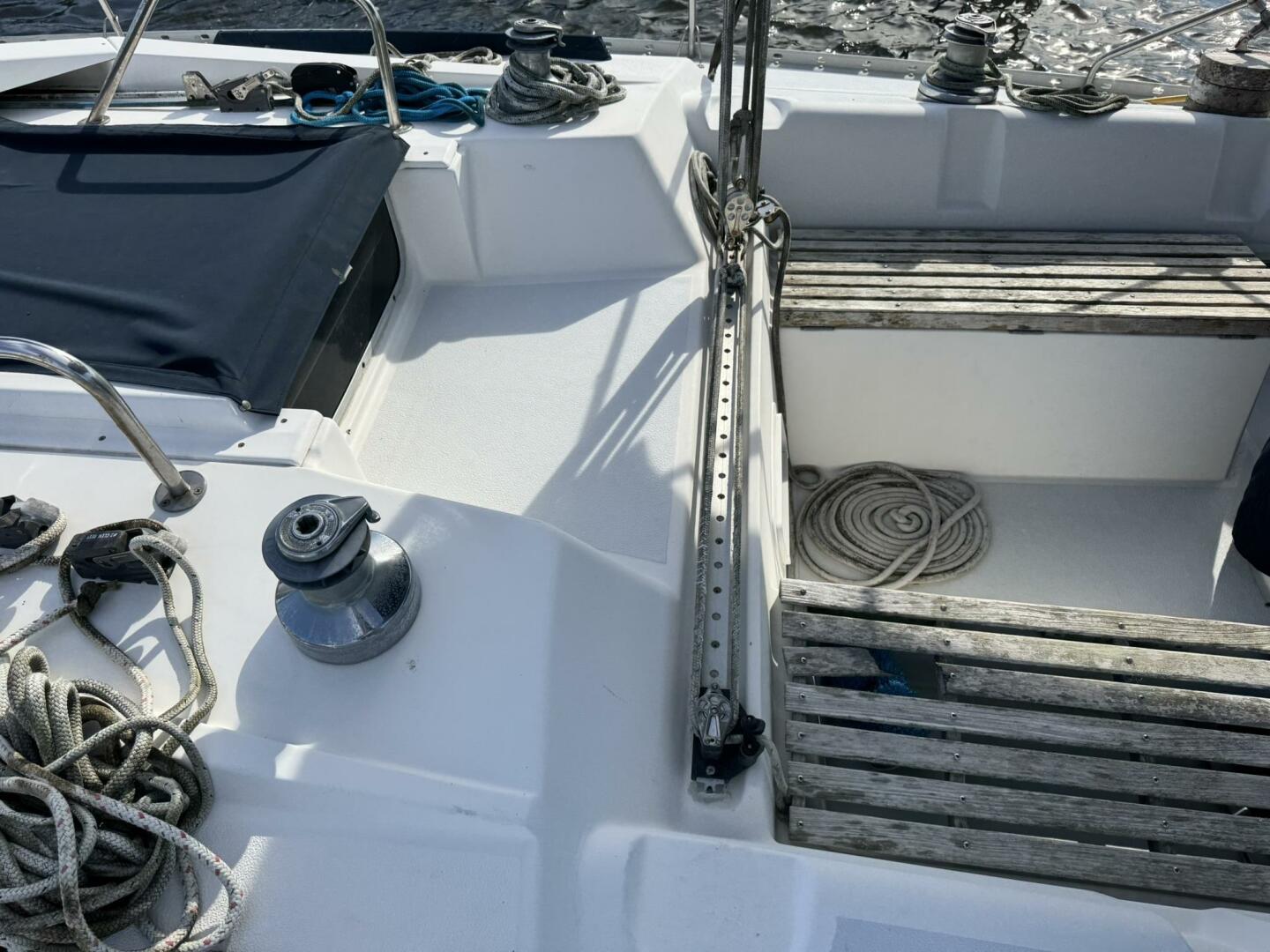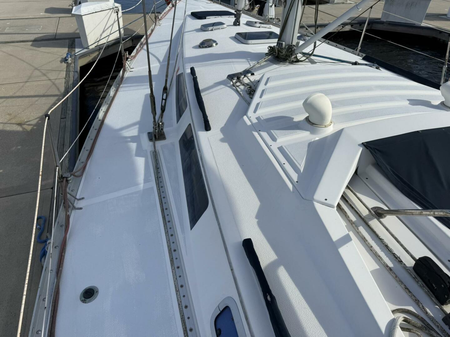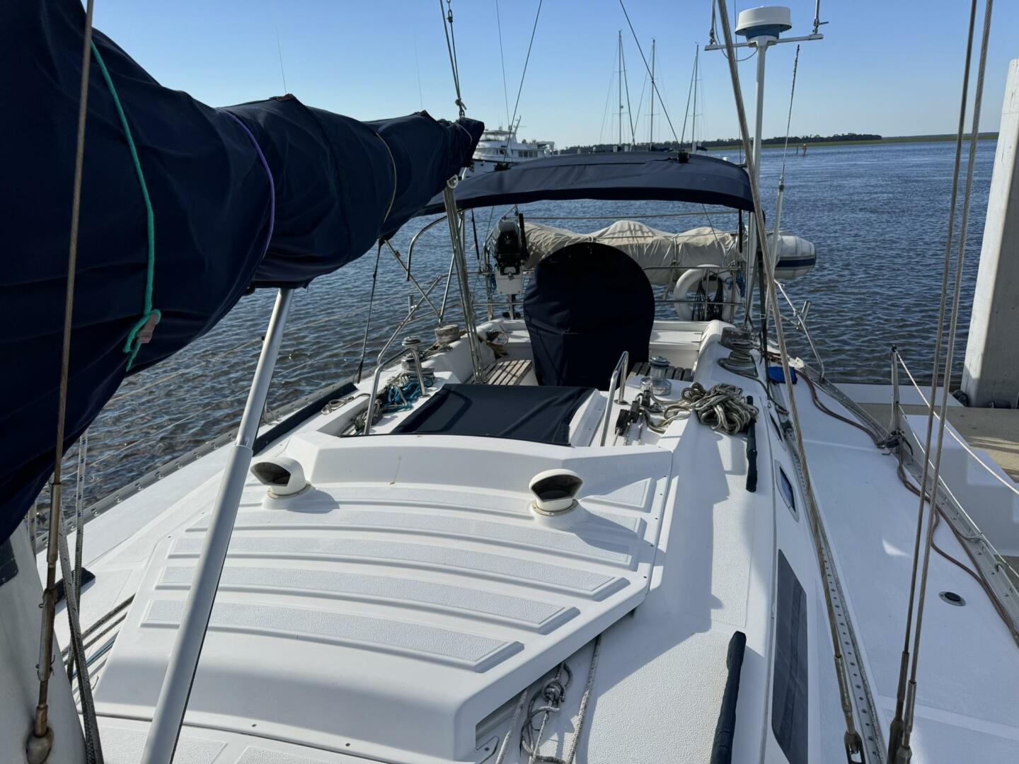 | Notable Upgrades: Notable Upgrades 2015 Yanmar 54‑hp repower (~602 hrs) Garmin echoMAP 74‑series chartplotter; radar; autopilot 10' Mercury 310 Hypalon dinghy (white) with 9.9‑hp Mercury four‑stroke and fuel tank Cockpit bench cushions and Bimini Rail‑mounted propane grill Scuba tank with weight belt/weights and 50‑ft high‑pressure air hose with regulator Dehumidifier Spares: belts, impeller, fuel filters; tool kit 12 PFDs; handheld spotlight Full galley kit (cookware, dishes, cups, glasses, cutlery) |