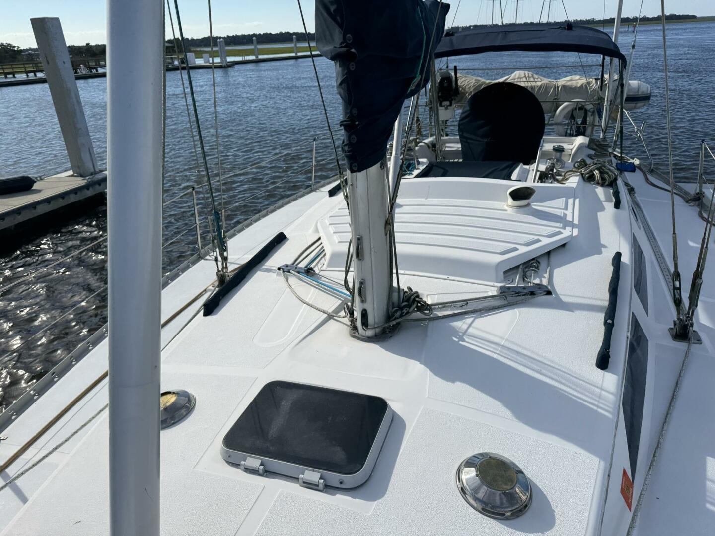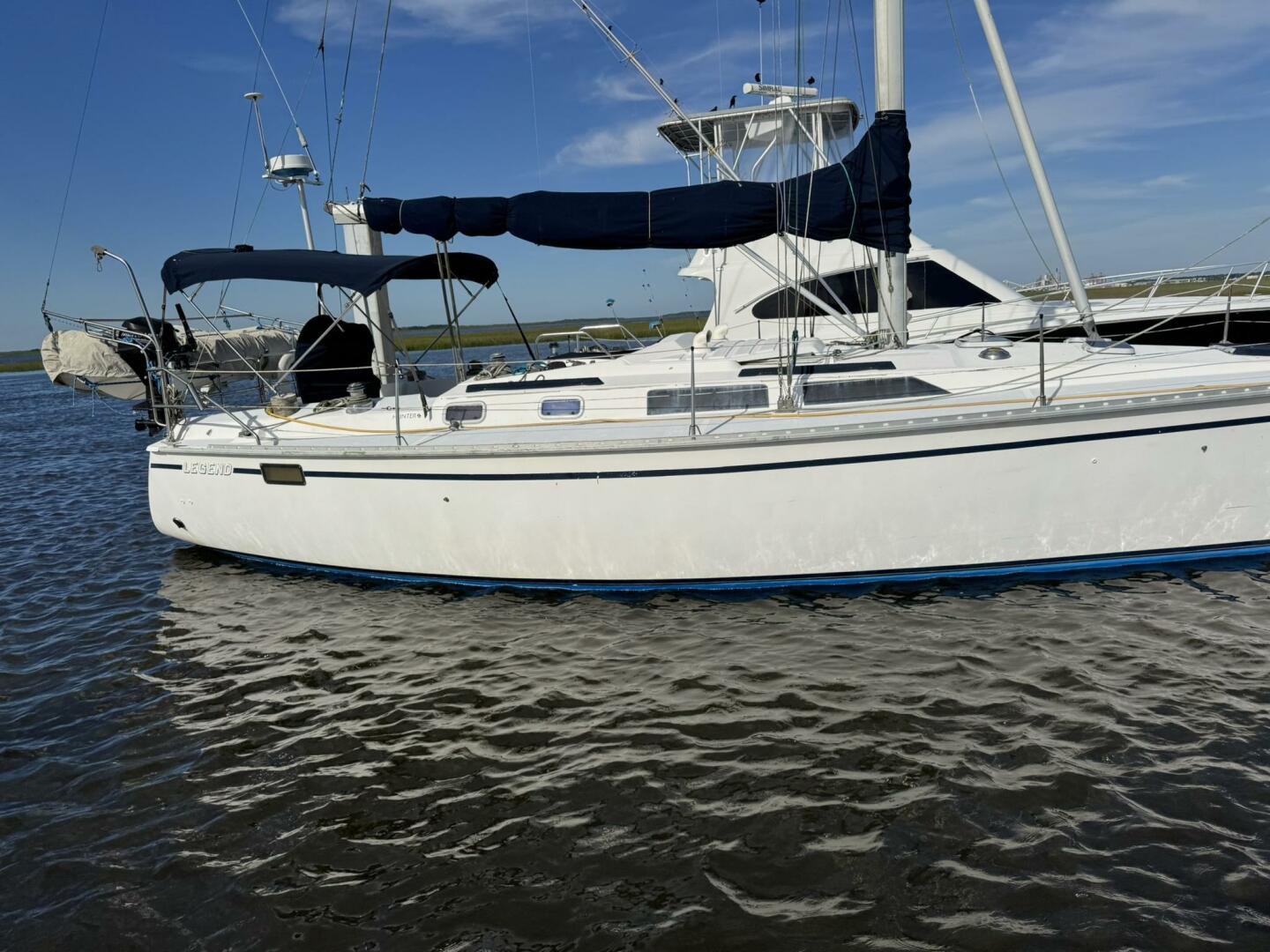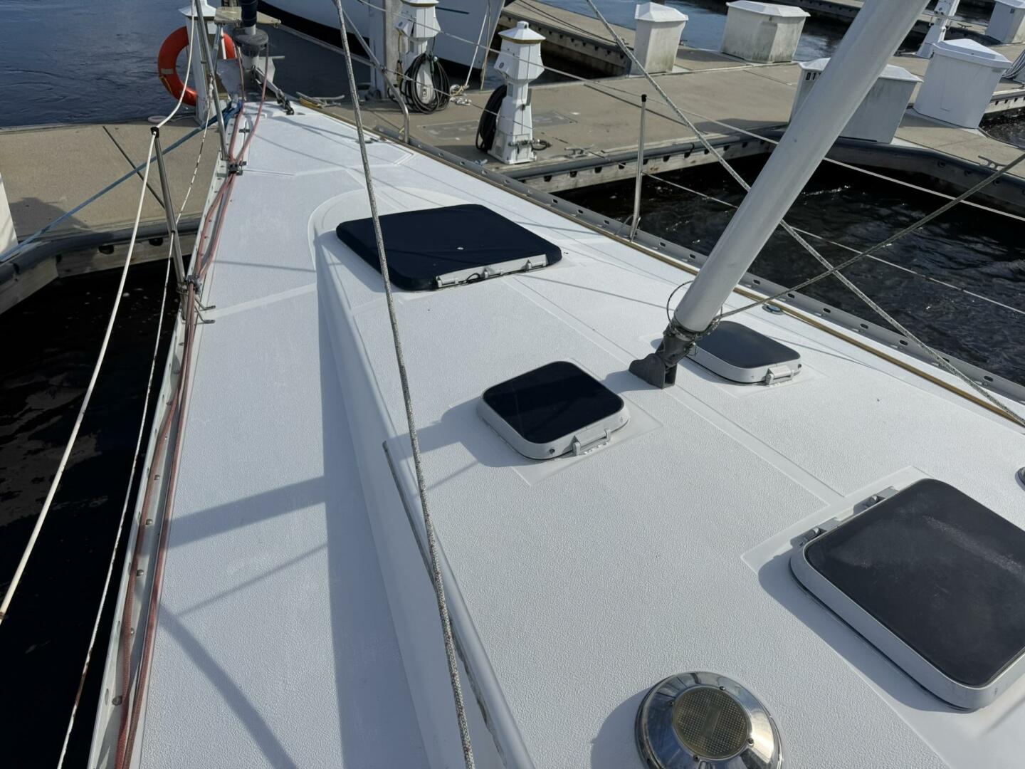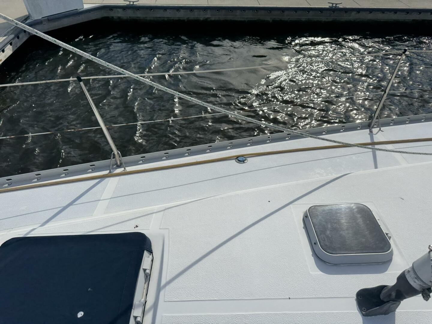 | Notable Upgrades: Notable Upgrades 2015 Yanmar 54‑hp repower (~602 hrs) Garmin echoMAP 74‑series chartplotter; radar; autopilot 10' Mercury 310 Hypalon dinghy (white) with 9.9‑hp Mercury four‑stroke and fuel tank Cockpit bench cushions and Bimini Rail‑mounted propane grill Scuba tank with weight belt/weights and 50‑ft high‑pressure air hose with regulator Dehumidifier Spares: belts, impeller, fuel filters; tool kit 12 PFDs; handheld spotlight Full galley kit (cookware, dishes, cups, glasses, cutlery) |