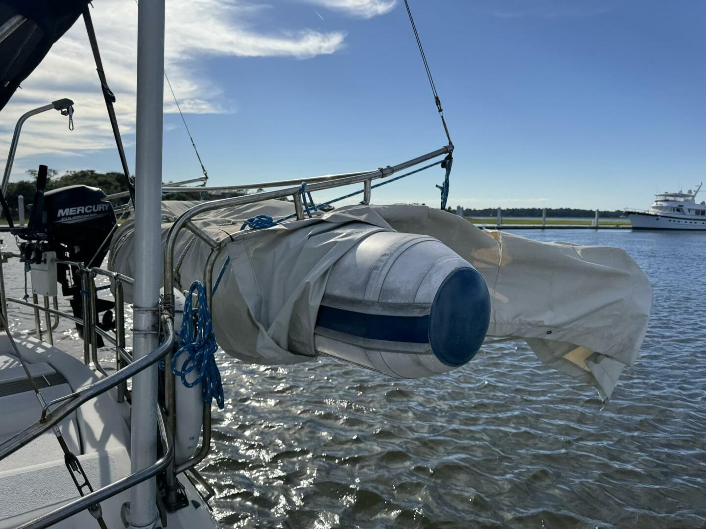 74‑series chartplotter, radar, autopilot, a 10" Mercury 310 Hypalon dinghy with a 9.9‑hp