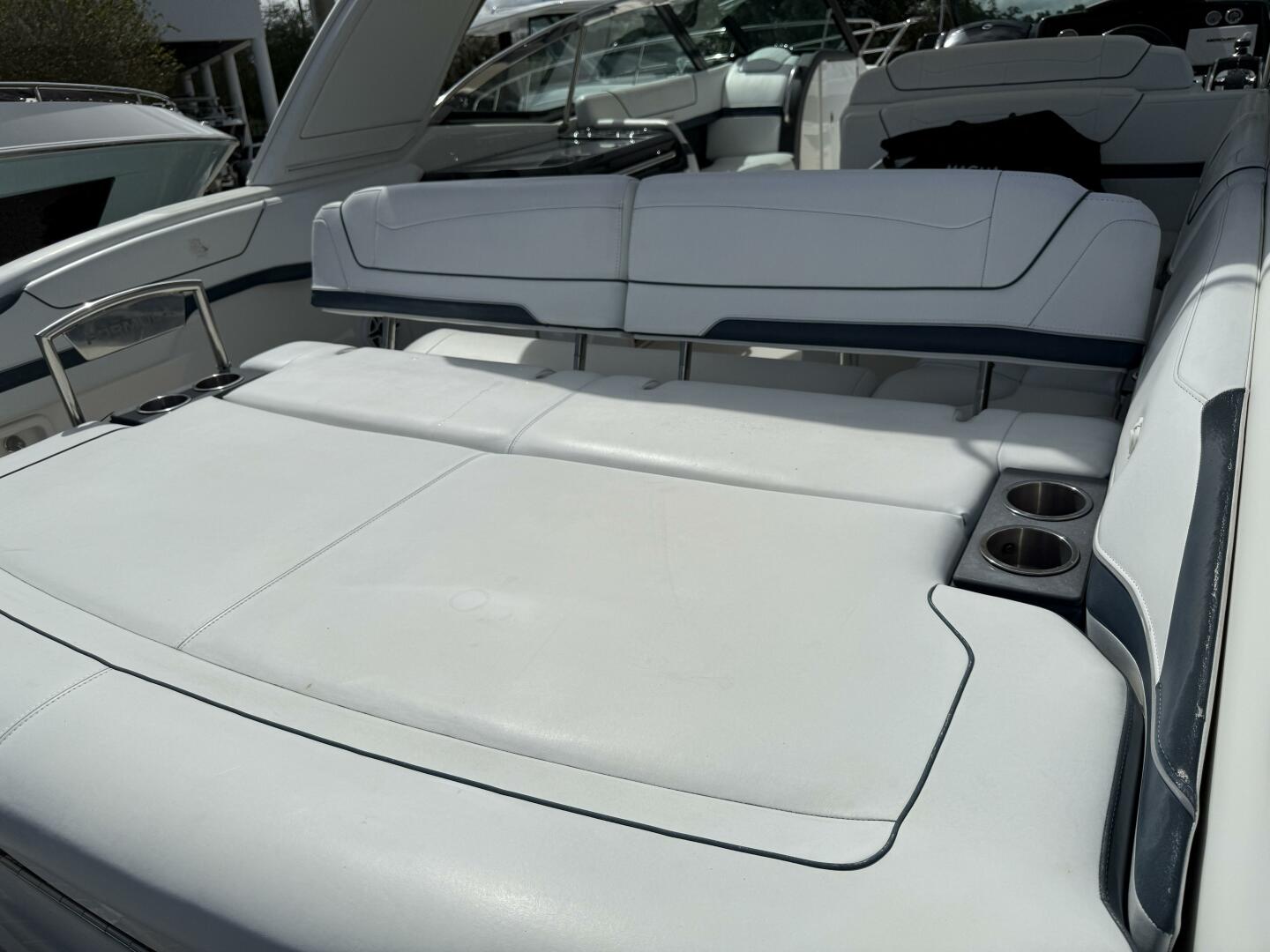 Introducing the stunning 2021 Formula 350 Crossover Bowrider OB, a remarkable blend of luxury and performance. With an impressive overall length of nearly 38 feet, this bowrider features a sleek fiberglass hull designed in a deep Vee shape, ensuring a smooth and stable ride on the water. Powered by three robust Mercury Verado 350 outboard engines, delivering a total of 1,050 horsepower, this vessel promises exhilarating speed and agility. The advanced joystick control enhances maneuverability, making it a breeze to navigate in any conditions. Inside, the boat offers a well-appointed cabin and head, providing comfort for day trips or weekend getaways. The thoughtful design and spacious layout make it perfect for entertaining guests or enjoying family outings. Experience the thrill of the open water with the Formula 350 Crossover Bowrider, where style meets performance in every detail.
