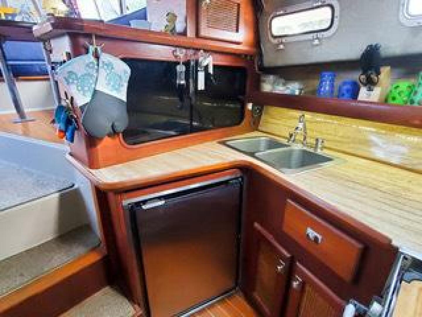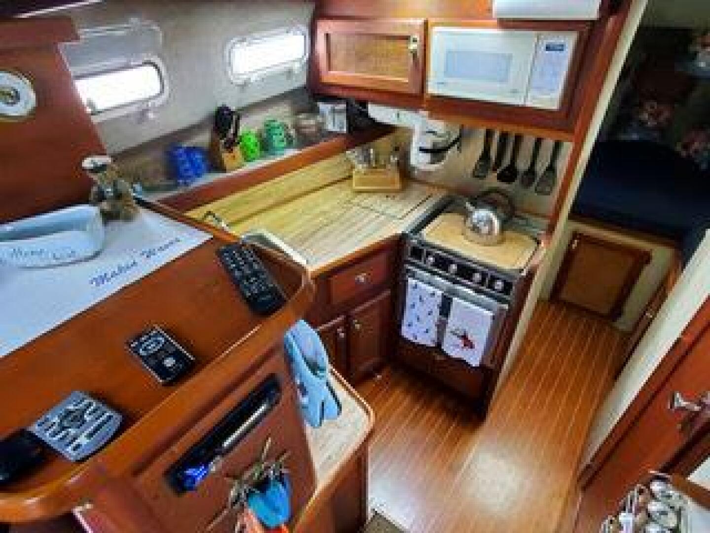 - Galley: Fully equipped with a refrigerator, stove, and sink—ideal for extended cruising