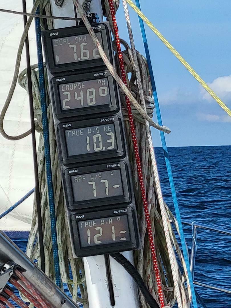The 20/20 repeater (B & G) instrumentation is located on mast, the boat's electronics include GPS plotter, VHF, RAM mic for cockpit, are great additions as is a new 400 amp hour battery (2024)