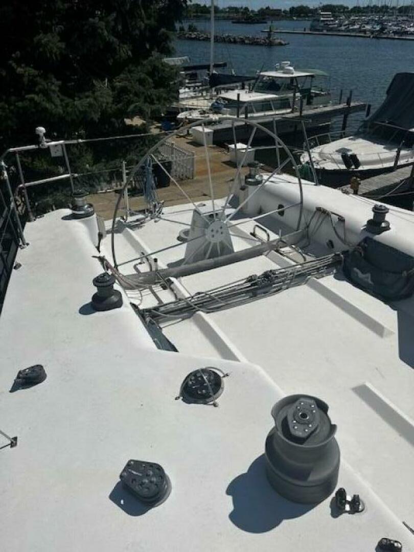 This racer/cruiser is known for it's 9' max draft and a wider beam at 13'6". Her spacious below deck interior is a surprise for a racing boat. The Tripp 47' has excellent light-air performance thanks to its generous sail configuration, and capabilities for both racing and comfortable blue water cruising. It offers versatile features, making it an easy choice for serious cruising, family use, club racing (PHRF rating of 3!) , or even liveaboard situations, with well-appointed accommodations and durable finishes like the newly installed below deck table that seats 6.