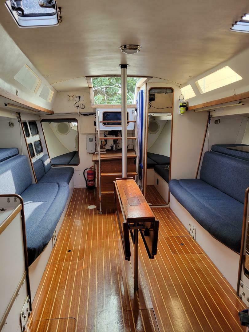 This boat can accommodate 7/8 comfortable, but can also be sailed singled-handed as evidenced by the photos. The sail inventory includes: