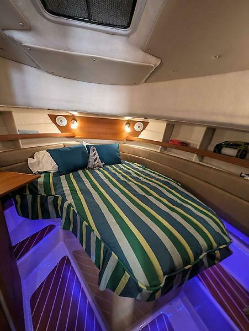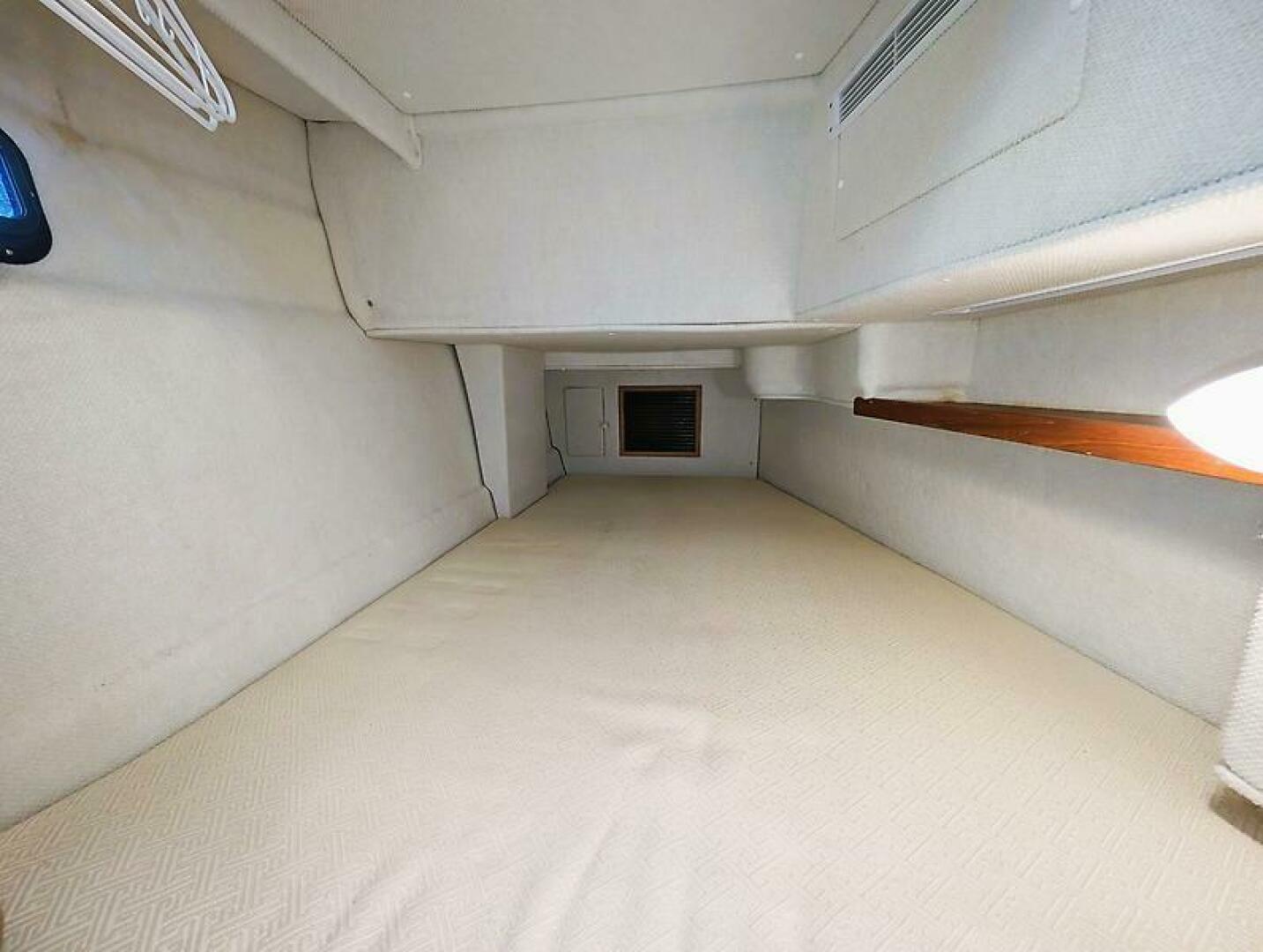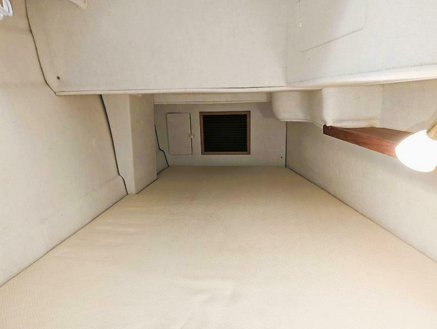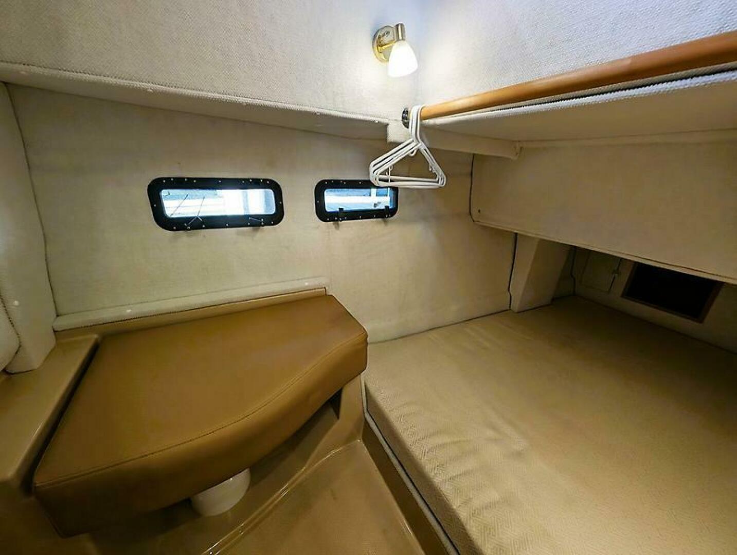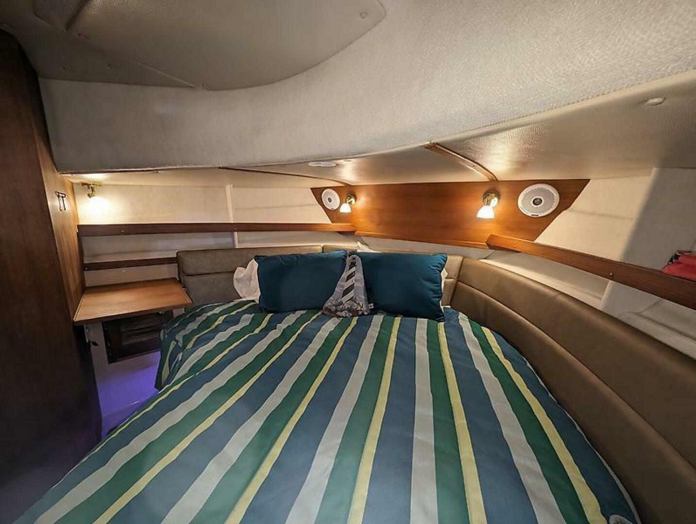The R-31 CB (Command Bridge) offers many notable features to make her ideal for extended cruising while still being a trailerable trawler. The R-31 was the first Ranger Tug to feature a flybridge equipped with electronic controls at both the upper and lower helm. The flybridge also retracts to allow for trailering the 31'. The builders at Ranger Tugs also equipped the foredeck with seating and a table that can be raised or lowered depending on whether the boat is under way or at anchor or dock for entertaining. In addition to the extra seating now available on the flybridge and foredeck the R-31 allows for a larger cockpit area with wraparound seating and extra seating that folds out of the gunwale. When not entertaining, seats are folded leaving the cockpit unencumbered.