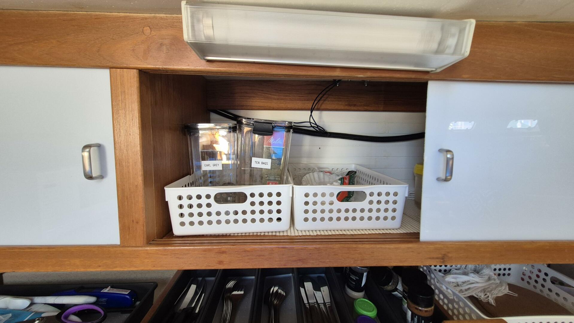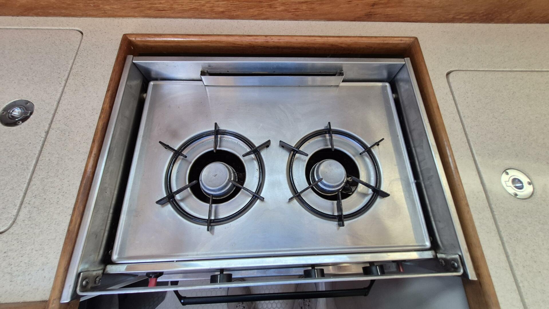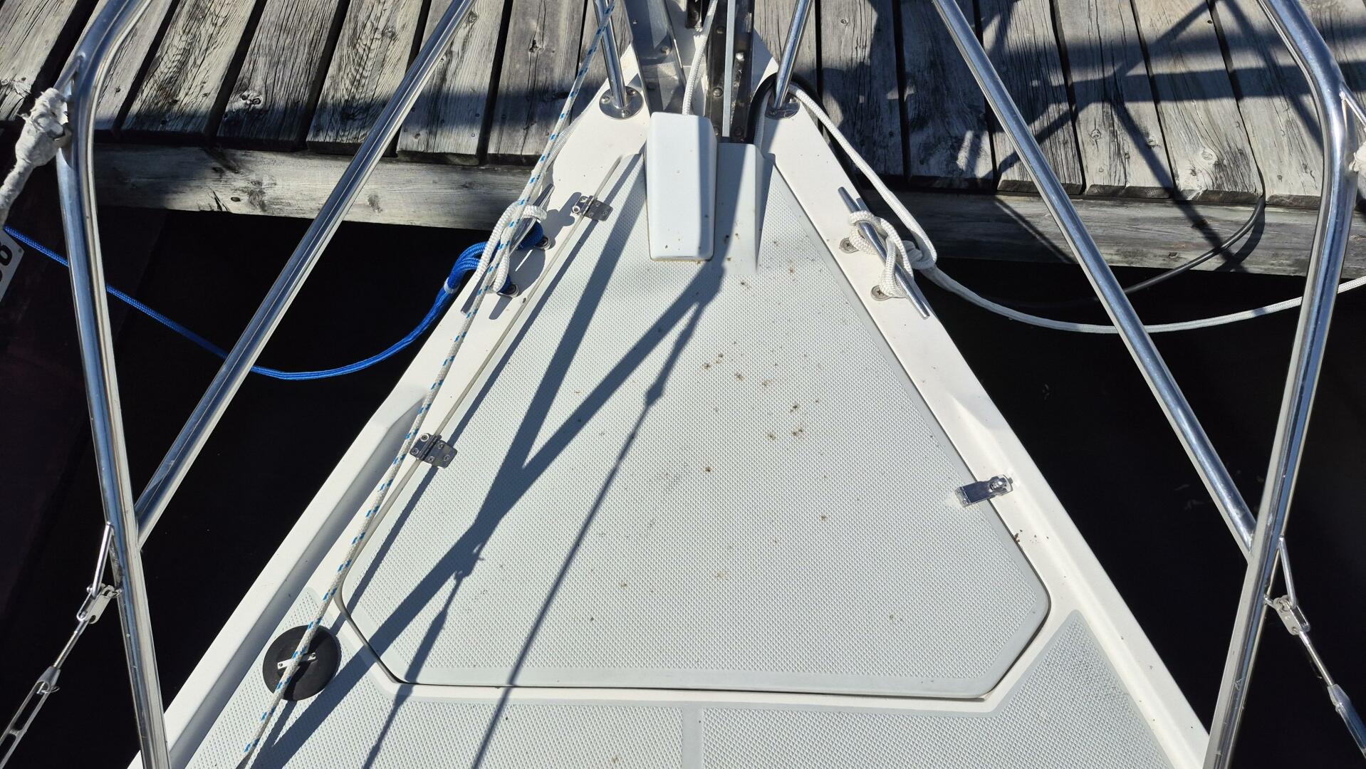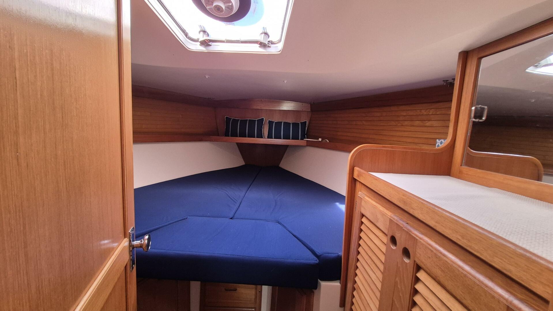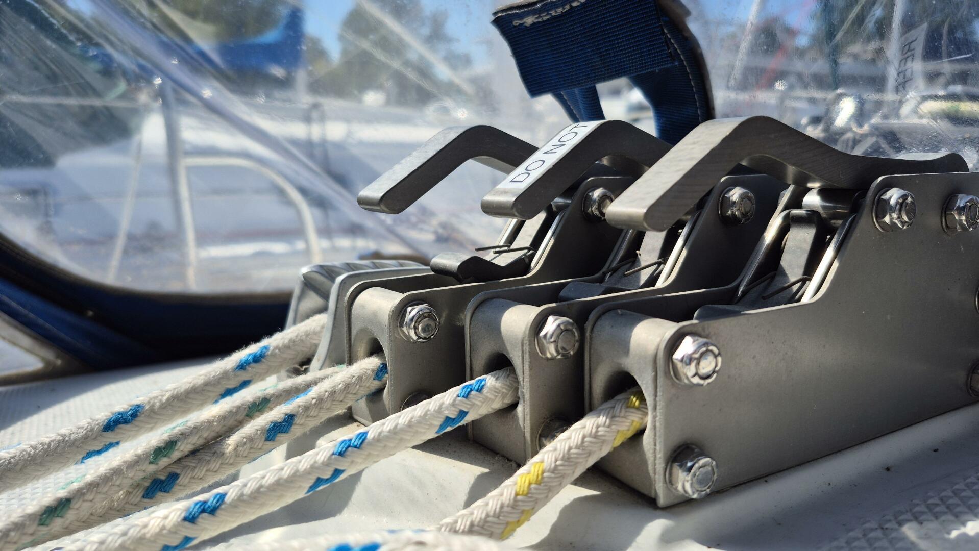 This is a perfect example of Catalina's legendary interiors; spacious, bright, smartly laid out, with a timeless modern feel. The U-shaped main salon seats six comfortably which doubles as a convertible double bed. The smart opposing armchairs increases entertaining possibilities which also that converts to a single berth. The galley features a gimballed propane stove/oven, deep dry locker, and ample storage with double stainless sinks. The forward stateroom includes a private entrance to the large head with an upgraded composting toilet, teak grid shower floor, and dual-entry design. The large aft berth offers excellent ventilation, natural light, and modular cushions for berth or garage use. A custom nav station with chart table and full drawer set adds utility and charm.