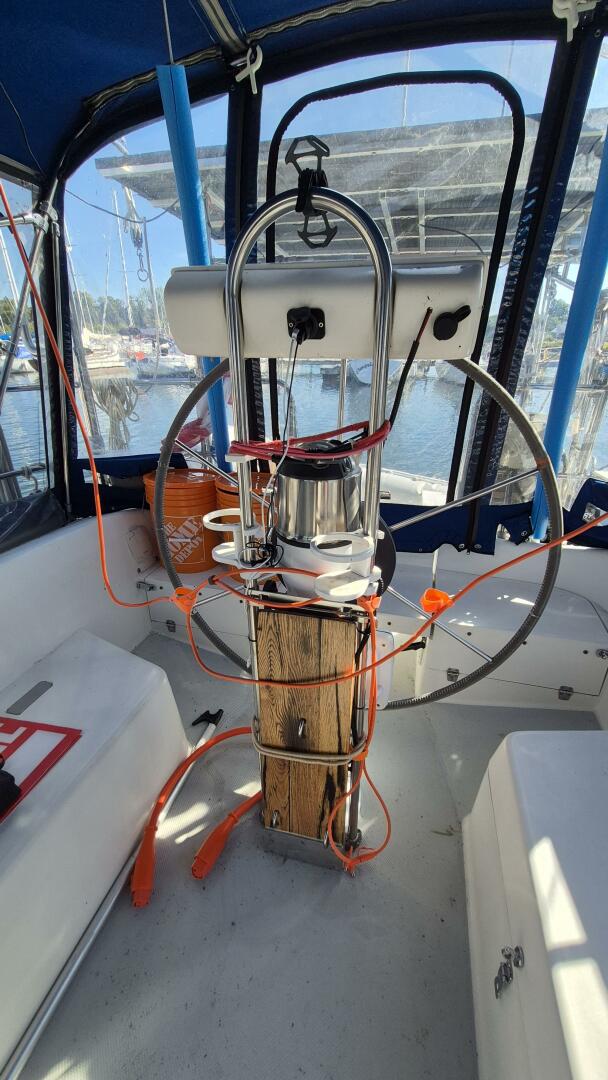 Custom binnacle with pod for phone, depth, wind, and autopilot