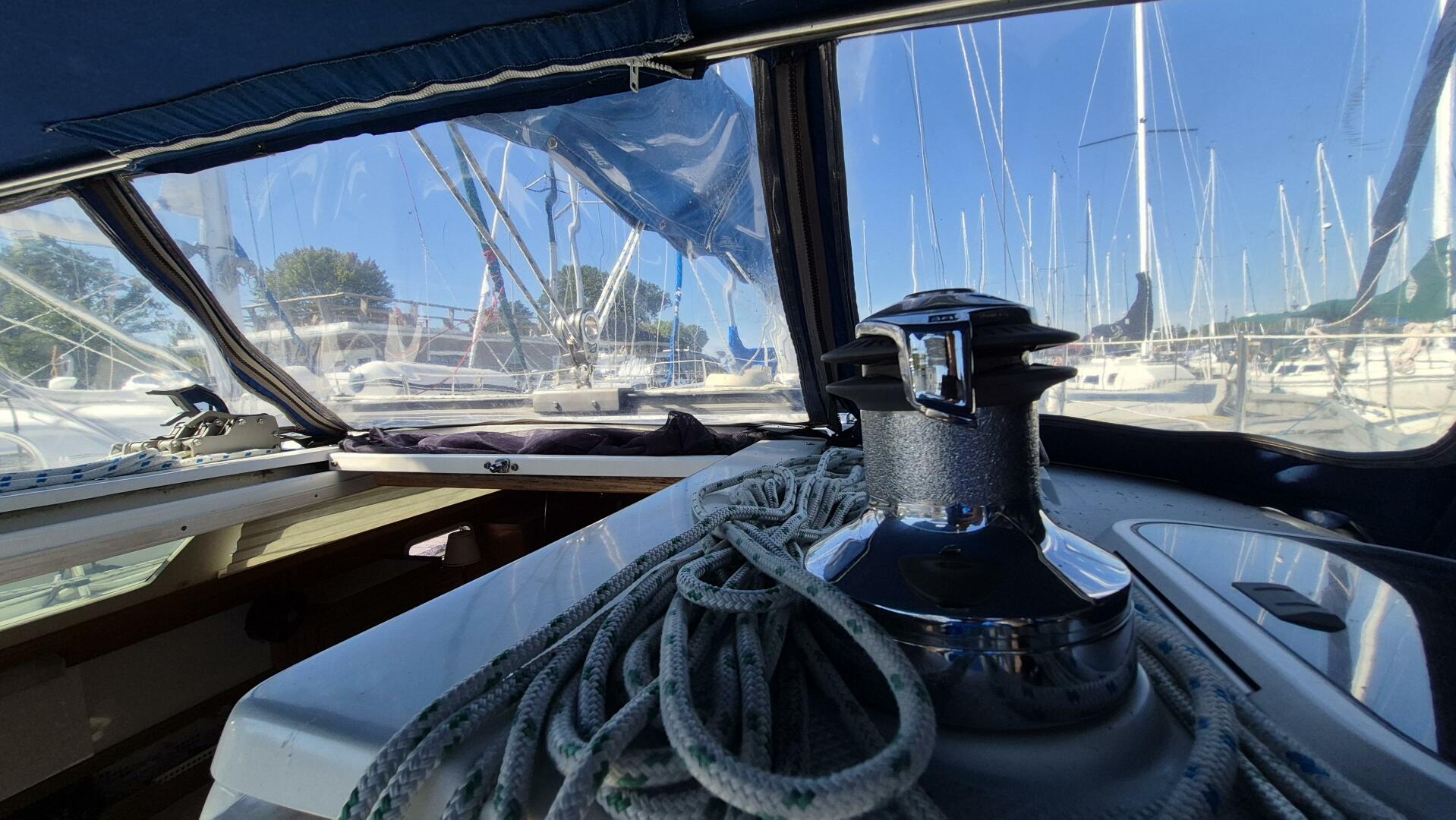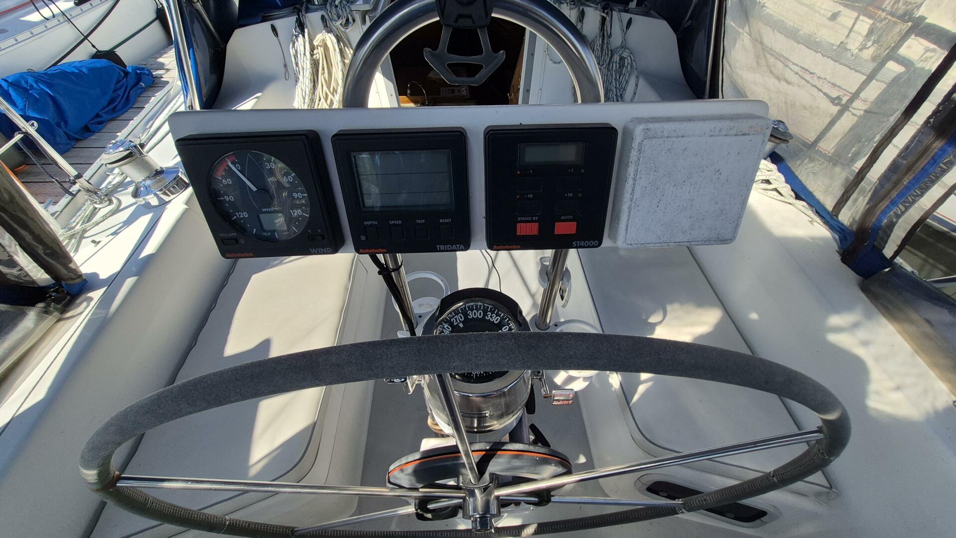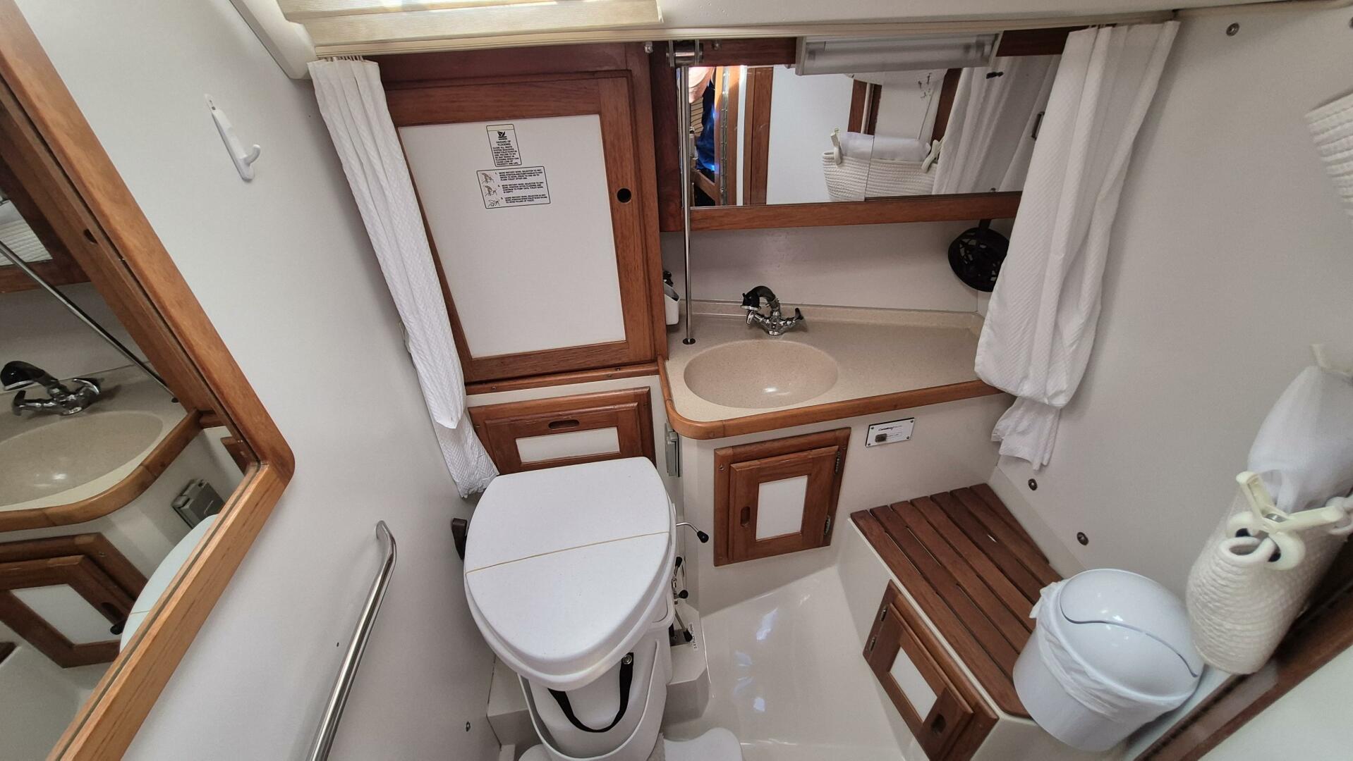 Up top, the cockpit offers generous seating, stern perch seats, a full enclosure with screens, walk-through transom, and a custom binnacle with integrated electronics pod. Lewmar self-tailing winches, boom vang, roller furling, and all lines led aft make single handled sailing simple. Whether you’re liveaboard bound or weekend cruising, “Good To Go II” offers comfort, energy independence, and equipment most boats at this price point simply don’t have. Simply put - you're good to go!