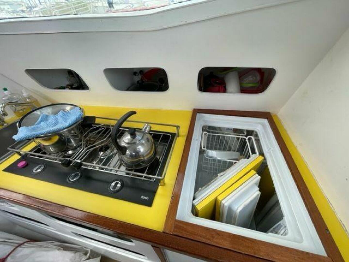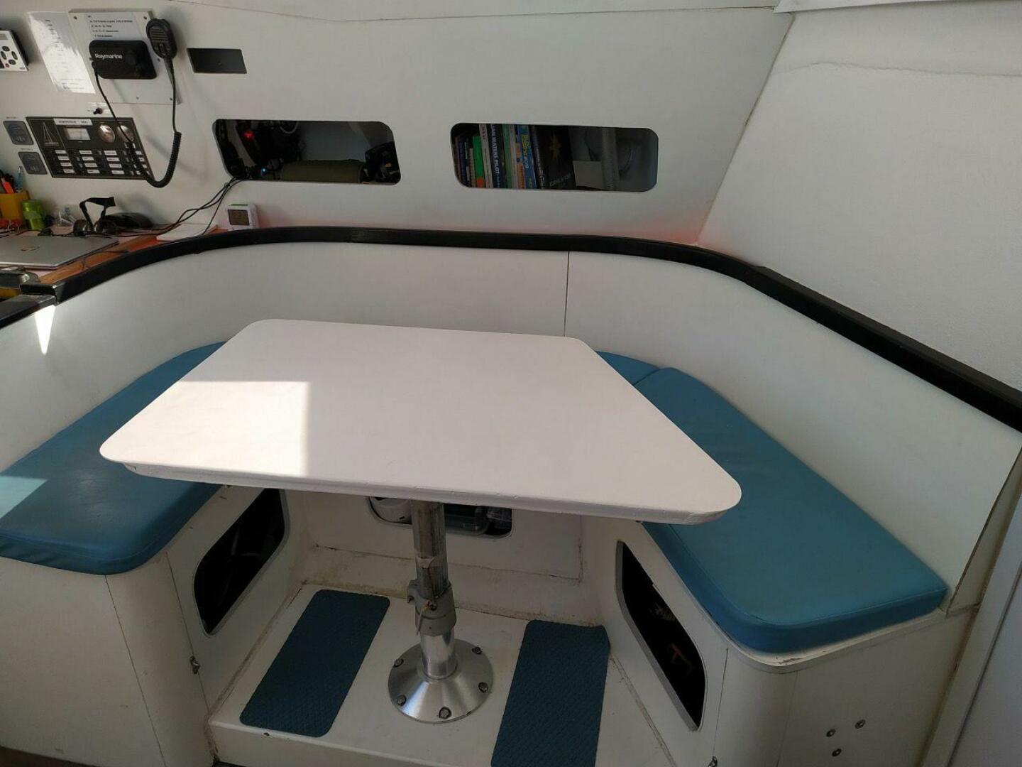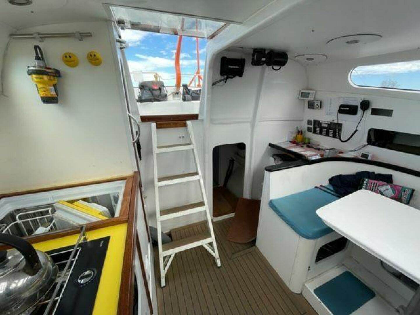 - Comfortable saloon seating for four, with a spacious galley for a trimaran of her class.