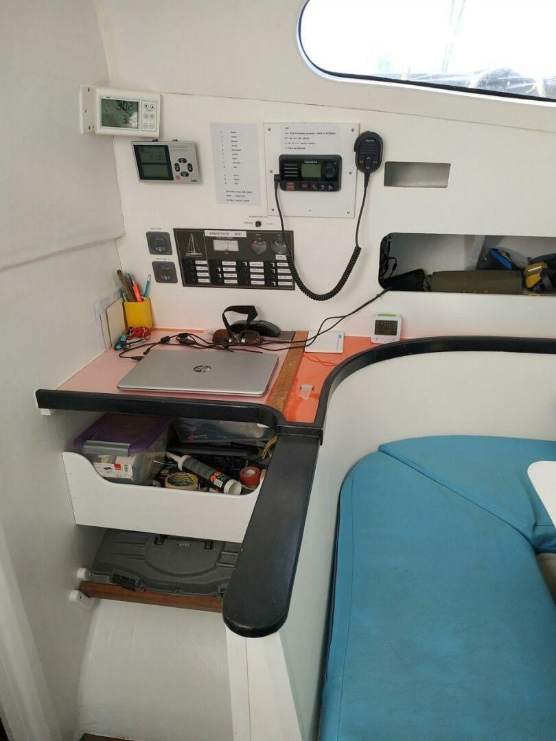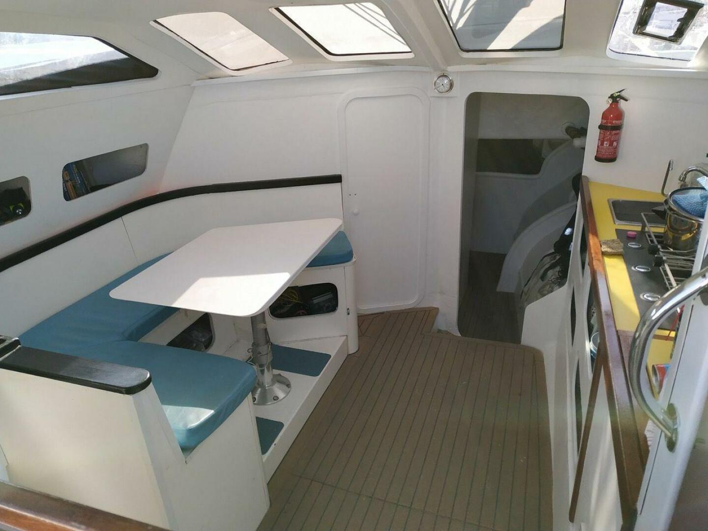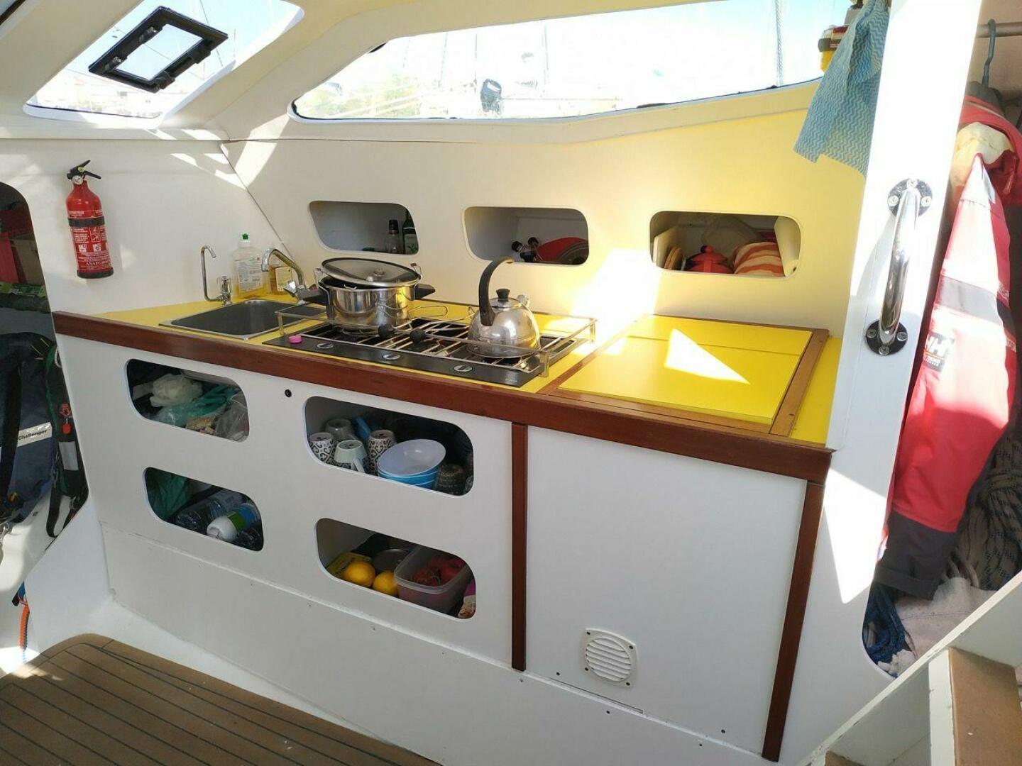 - Comfortable saloon seating for four, with a spacious galley for a trimaran of her class.
