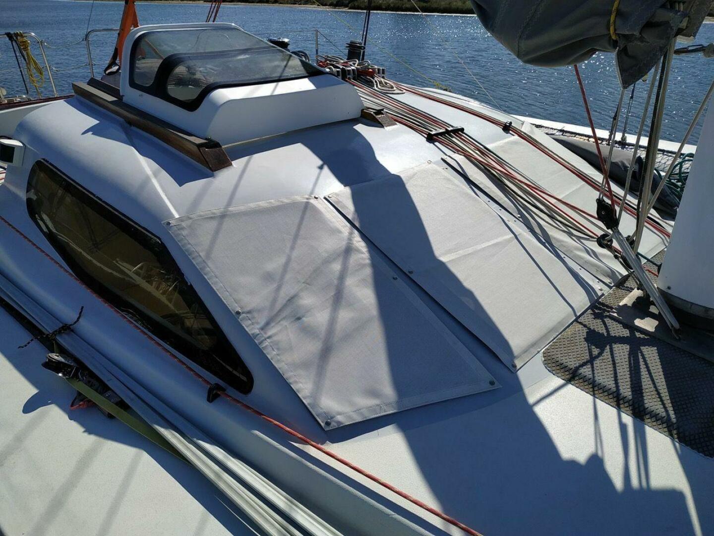 Originally built with a magnificent central hull and strip-planked floats by a Swan-Nautor subcontractor in Finland, this vessel was transformed by her English owner into a powerful, reliable, and fast trimaran. John Shuttleworth designed the carbon arms that give her both strength and performance.