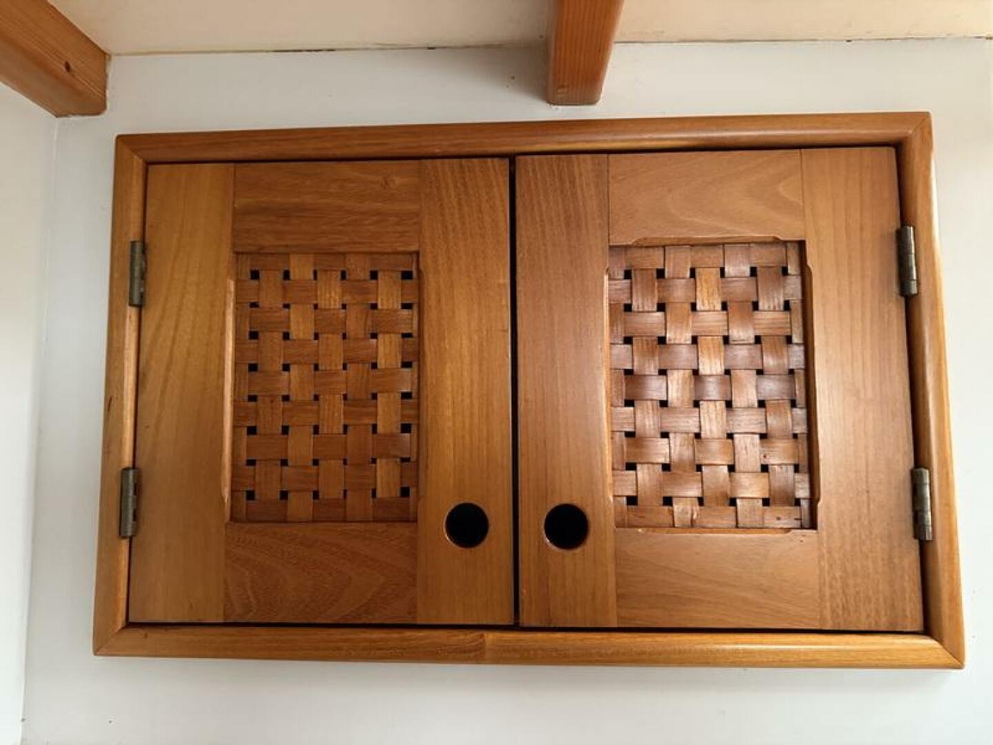 - Teak dorade boxes with stainless steel cowl vents port and starboard above main saloon