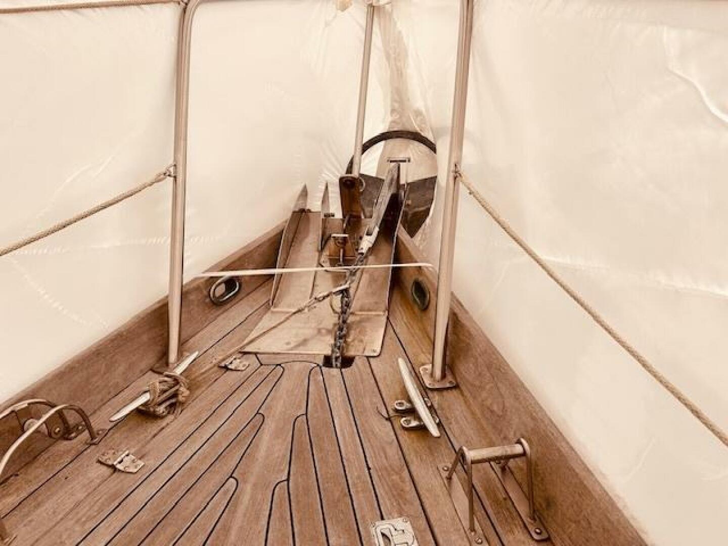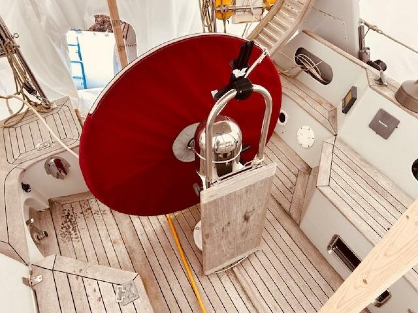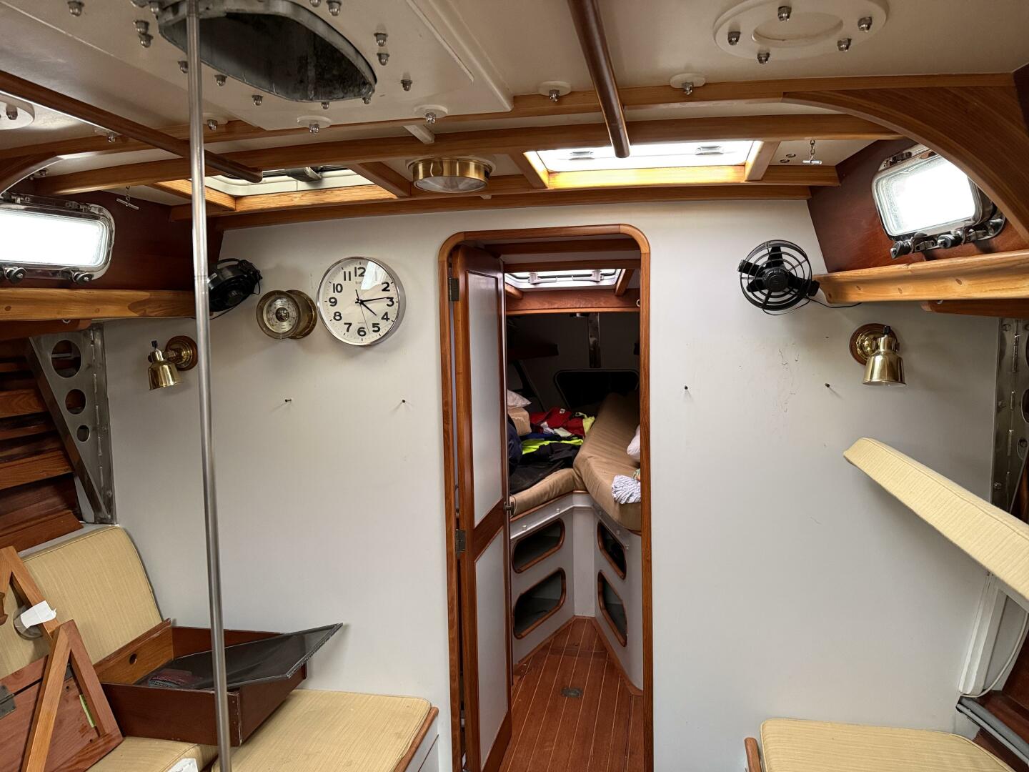 - Small Lewmar opening hatch in cockpit above quarter berth