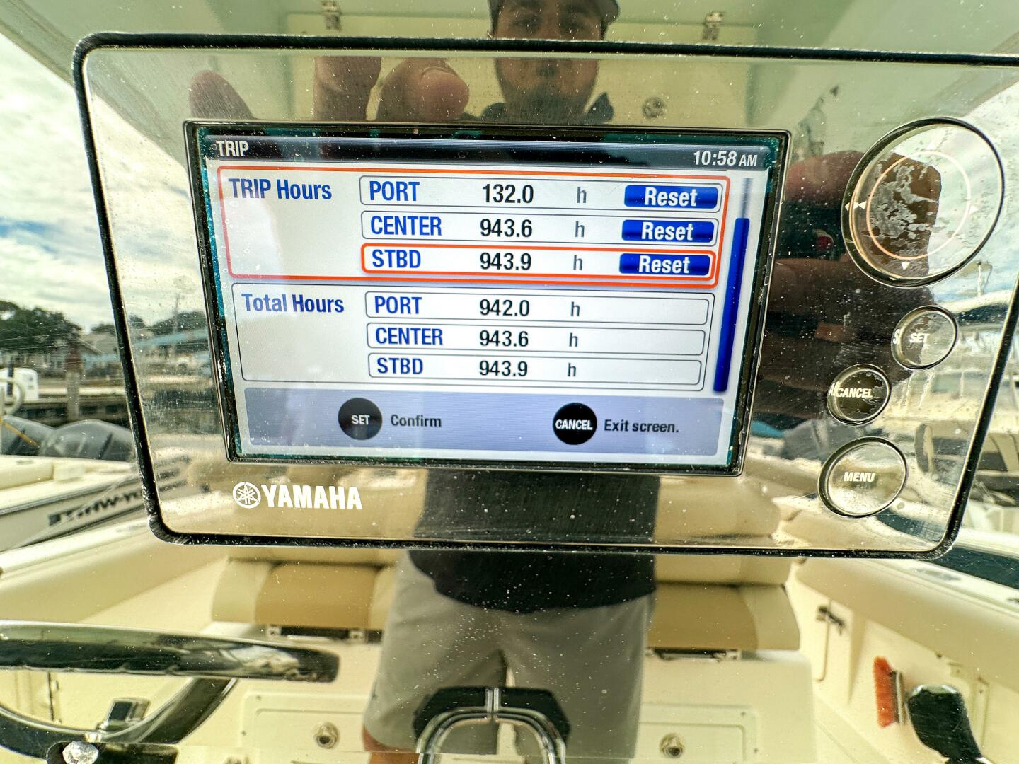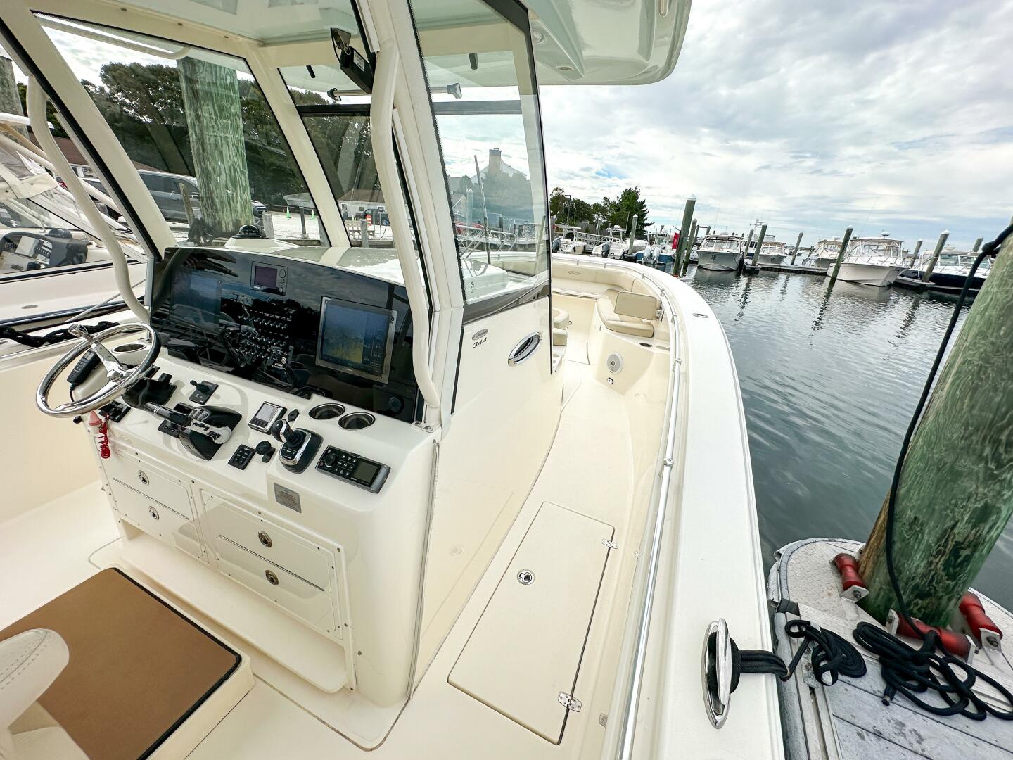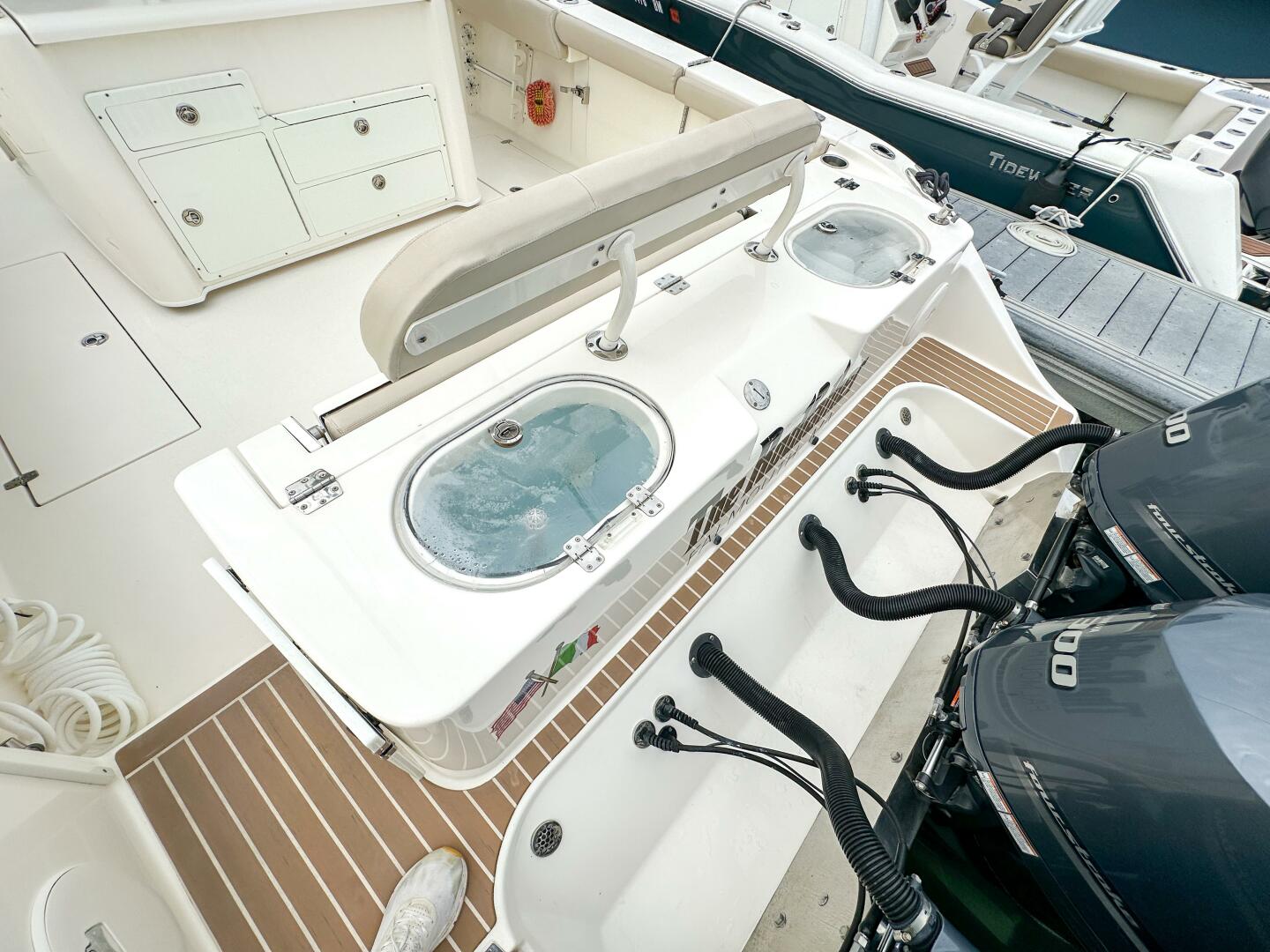 | Notable Upgrades: Engine Service Perform 20 Hours ago (Water Pumps, Thermostats, Oil Change, Gear Oil Change, Fuel Filters) Flir (2025) Cockpit, Console and Hard Top Lighting (2025) Taco Marine Carbon Fiber Outriggers (2025) Garmin Open Array Radar (2024) Cockpit Upholstery (2024) Underwater Lights (2023) Helm Wings and Curtains (2023) Bow thruster installed 2021 Engine Covers Joystick |