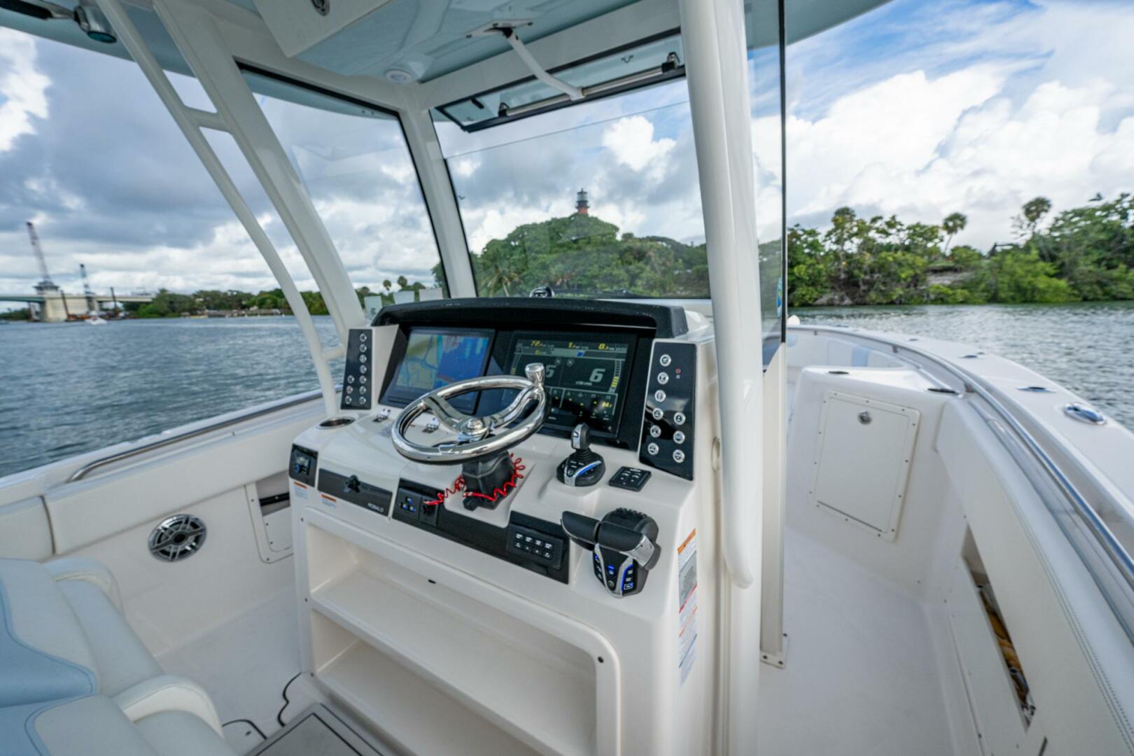 This 2023 302 Robalo center console has all the right options and the desirable 300 Yamahas. Helm master joystick steering with hefty Warranties remaining until 9/2028 ensure peace of mind for several years to come!