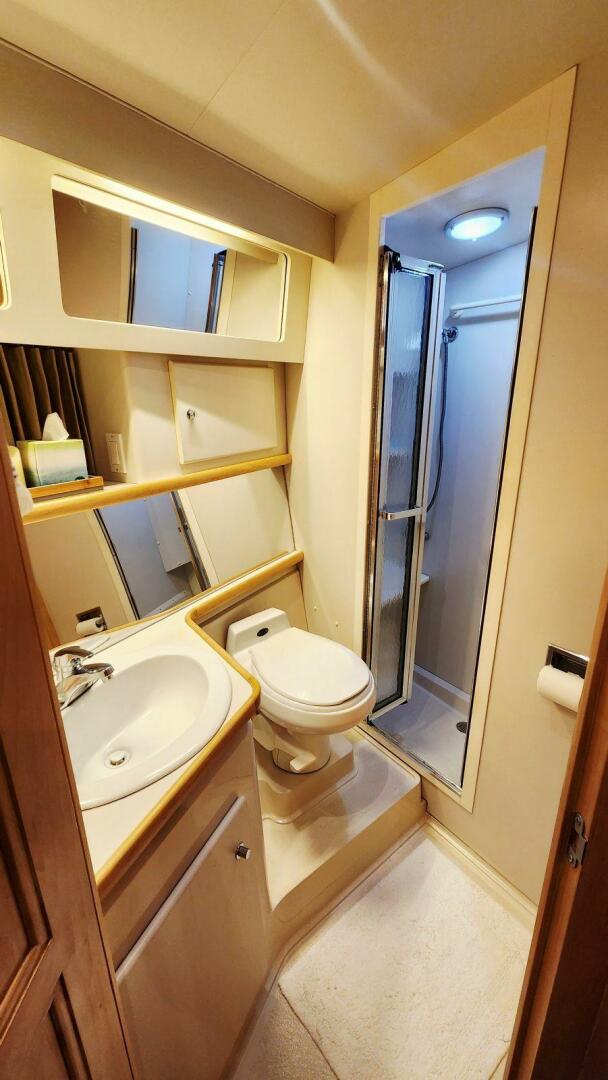 Practical, comfortable, and private, the master head is a perfect extension of the stateroom—a true liveaboard amenity that makes life on the water easier.