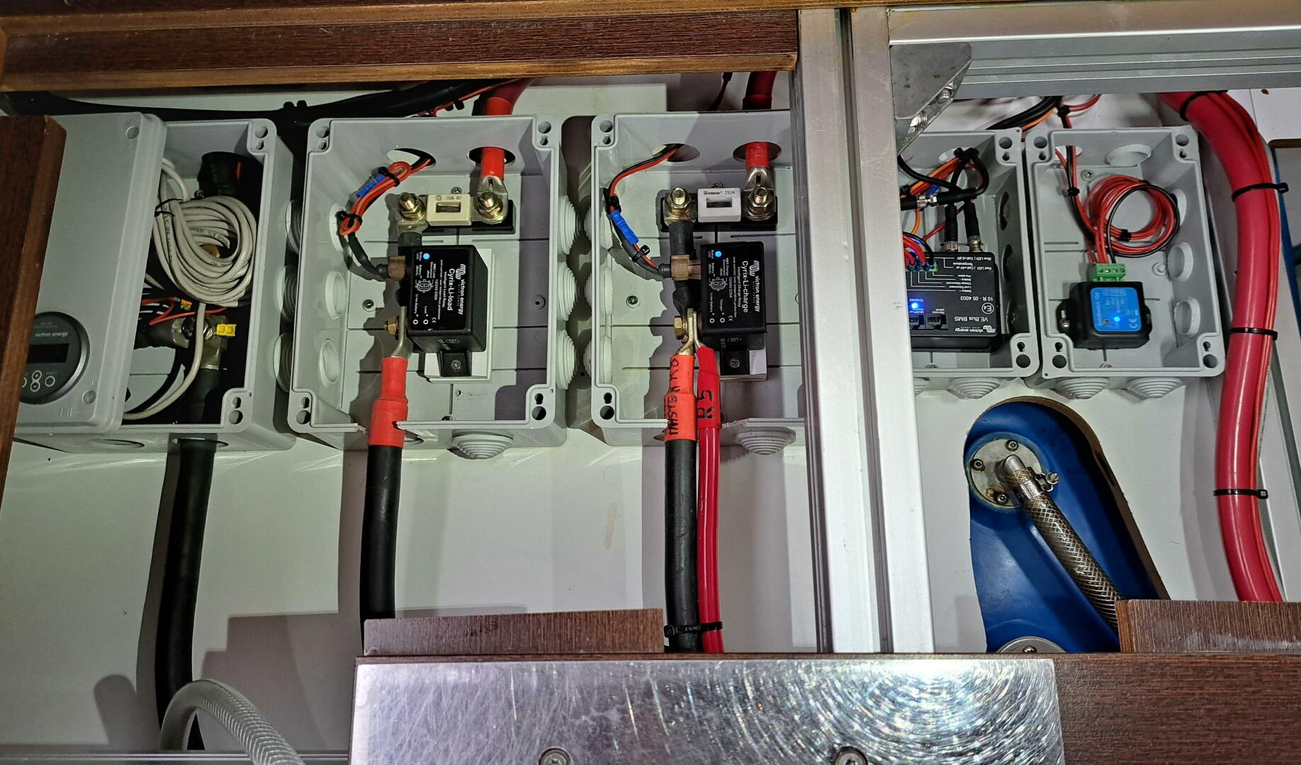 - 12V service circuit with 2 x 220Ah Victron LiFePO4 batteries