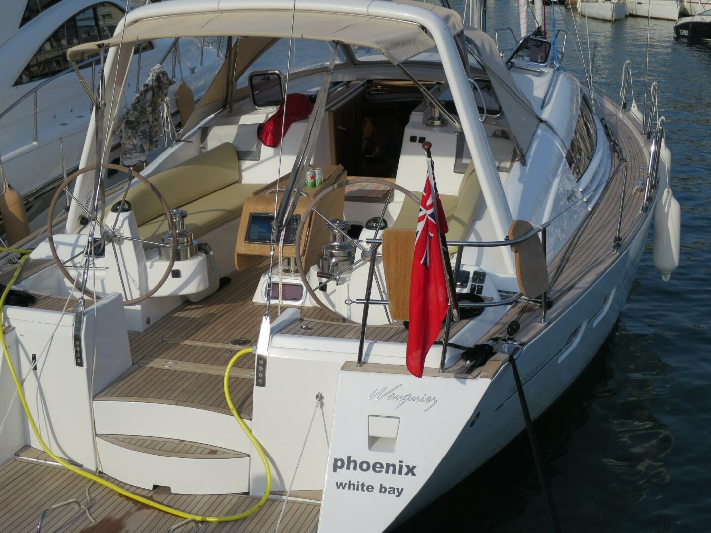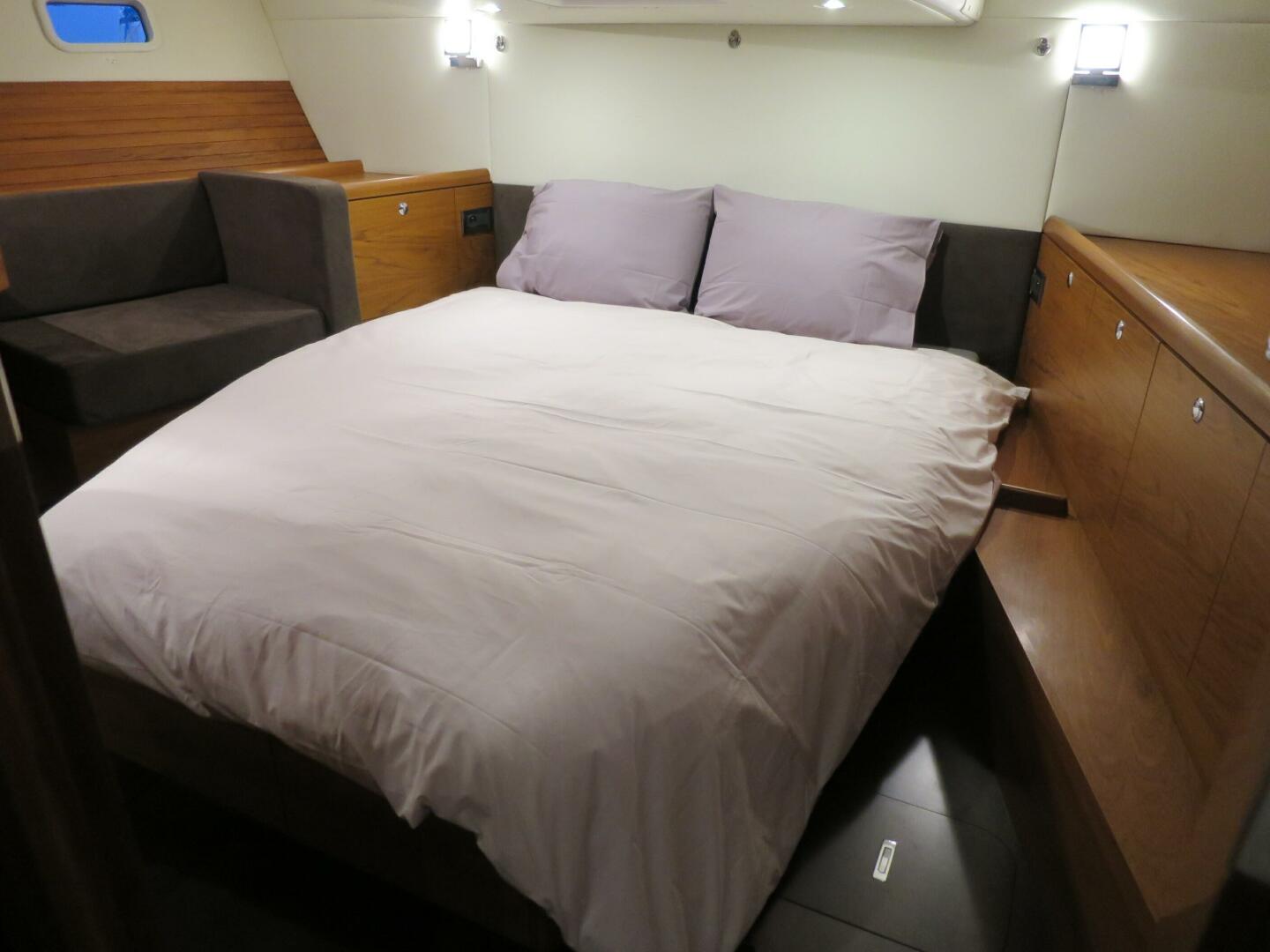 Since the early 1960's Wauquiez has been producing high quality blue water capable yachts. This broker when searching for a safe voyaging platform to take offshore with his family cruising found another Wauquiez model, the Amphitrite, and was immediately impressed with the build quality and accessibility of systems. Phoenix, built in 2015, was the last PS47 produced before the builder moved to the PS48 model. Both the interior and exterior of Phoenix have been well thought out for functionality offshore as well as at anchor. The original and only owner has painstakingly outfit this boat for serious blue water voyaging and has already logged over 48,000 miles. If you are looking for a pretty boat to enjoy on the dock plugged into shore power this is NOT the boat for you. This vessel has been set up for voyaging long distances and her equipment list reflects this. You will not find a generator or air conditioning, but you will find well organized spare parts for every system onboard. You will find a Watt and Sea 600 watt hydrogenator, a professionally done Victron Lithium battery installation and a 250-amp Balmar alternator negating the need for solar power. You will find a high output watermaker as well as powerful electric winches, rigging and sails designed to turn out 200+ mile days offshore. You will find a sheltered well protected cockpit, powerful bow thruster, and bespoke dinghy davits among her list of cruising equipment. When you are finally ready to make a stop, possibly in a 100’ deep pacific atoll anchorage, you will sleep well with 125m of high tensile anchor chain connected to a robust 33kg Rocna anchor. Phoenix is nothing short of a thoroughbred offshore workhorse that will take you anywhere in safety and comfort. Her spacious aft cabin with centerline queen berth is a rare find on aft cockpit boats. A large aft head features an enclosed separate shower. The walkthrough galley to port offers ample counterspace and make meal prep both at sea and at anchor a breeze. The raised saloon is well lit thanks to the large, fixed ports making this Pilot Saloon warm and inviting. The navigation station in the saloon to port also offers access to all electrical controls. Forward her guest cabin to starboard features hanging lockers and over under berths. The guest head to port also features a separate shower. Finally, forward is the VIP guest cabin with queen sized berth and ample hanging and storage lockers.