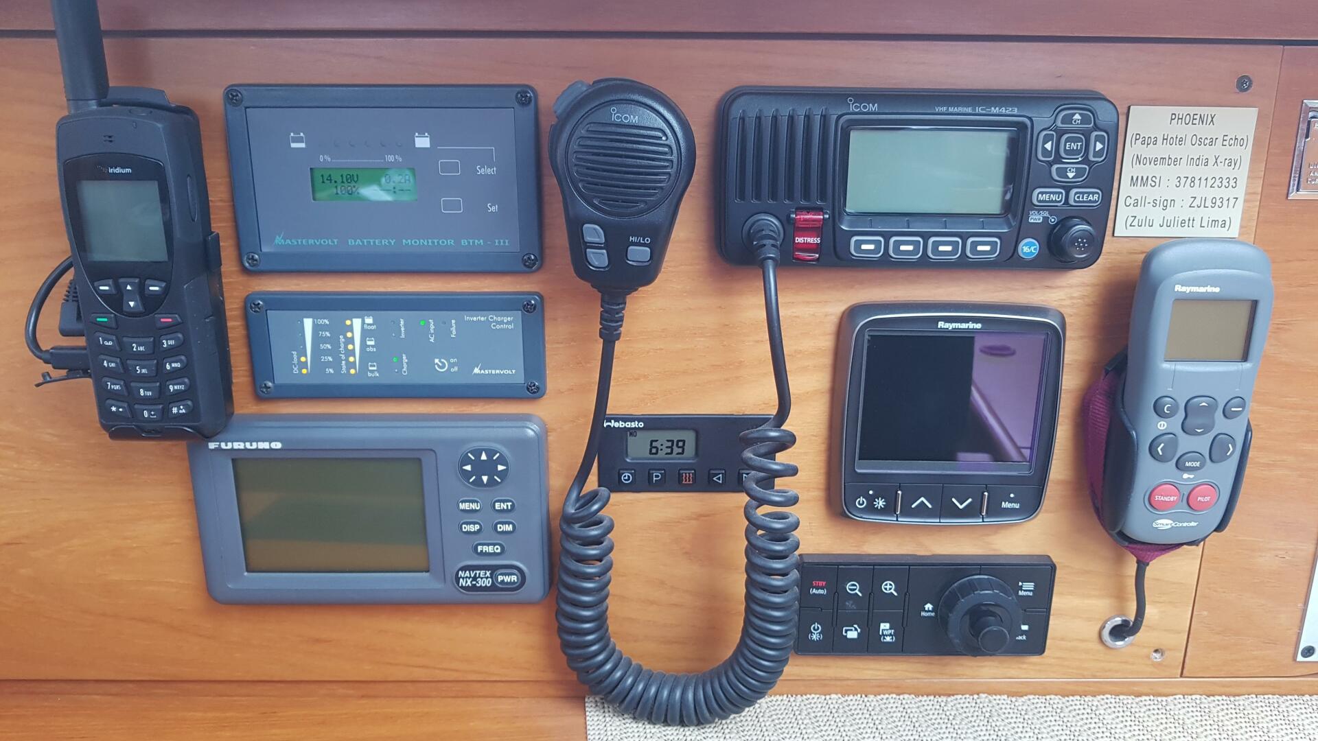 - Full & upgraded electronics with high-speed satellite comms (AIS, Starlink, Iridium, ICOM VHF + Shakespeare antenna, ForwardScan, GSM booster)