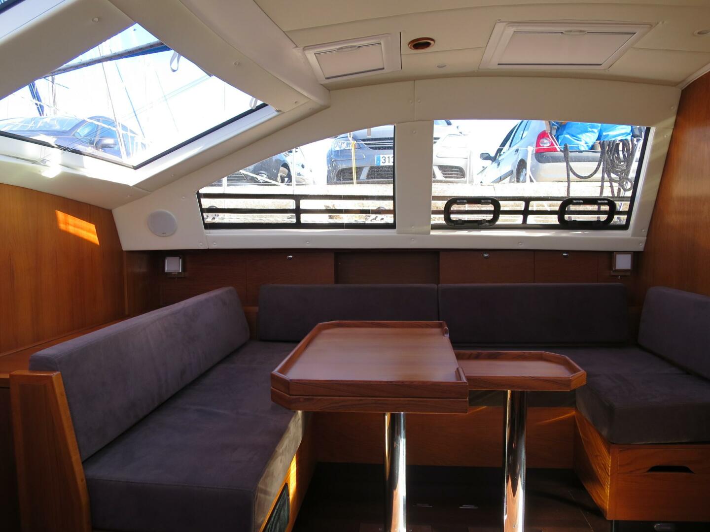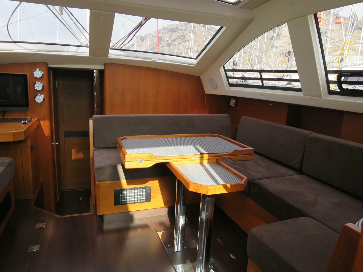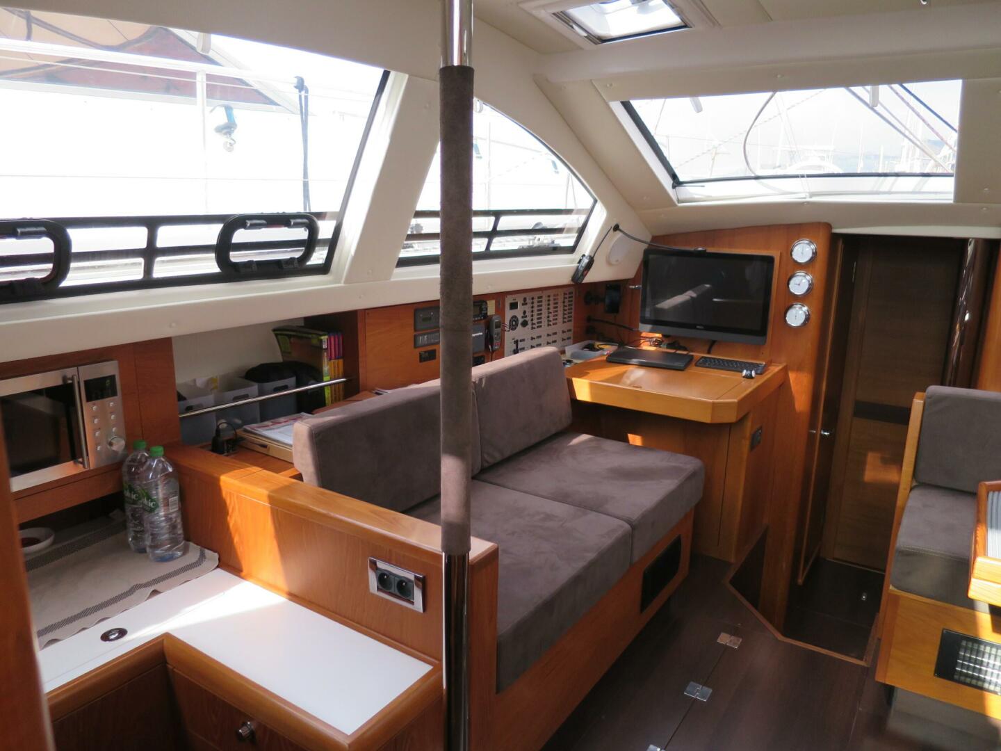 - Settee / navigator’s seat to port with stowage under seats/backrests