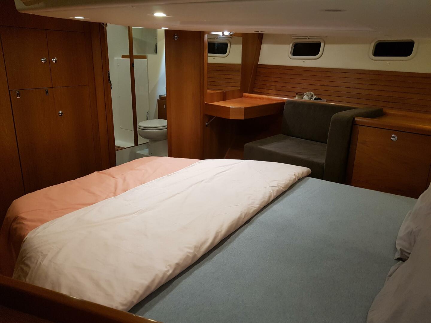 - Cutter rigged: Solent & staysail (HydraNet), full batten mainsail (HydraNet), 110m² upwind sail area, 150m² asymmetrical spinnaker with sock