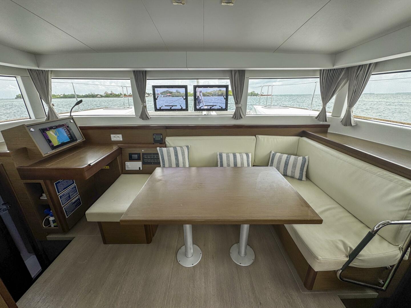 Exterior Features: Designed for comfort and ease, the Lagoon 40 offers multiple outdoor living spaces. The spacious aft cockpit features a starboard dining table for up to 12 guests, a lounge area, and rear beam seating. Large transoms and a swim platform provide safe, easy access to the water and tender. A forward cockpit with sunbeds adds another social or relaxation area. The ergonomic helm station connects seamlessly to both cockpit and deck, keeping the skipper engaged with the crew and guests.