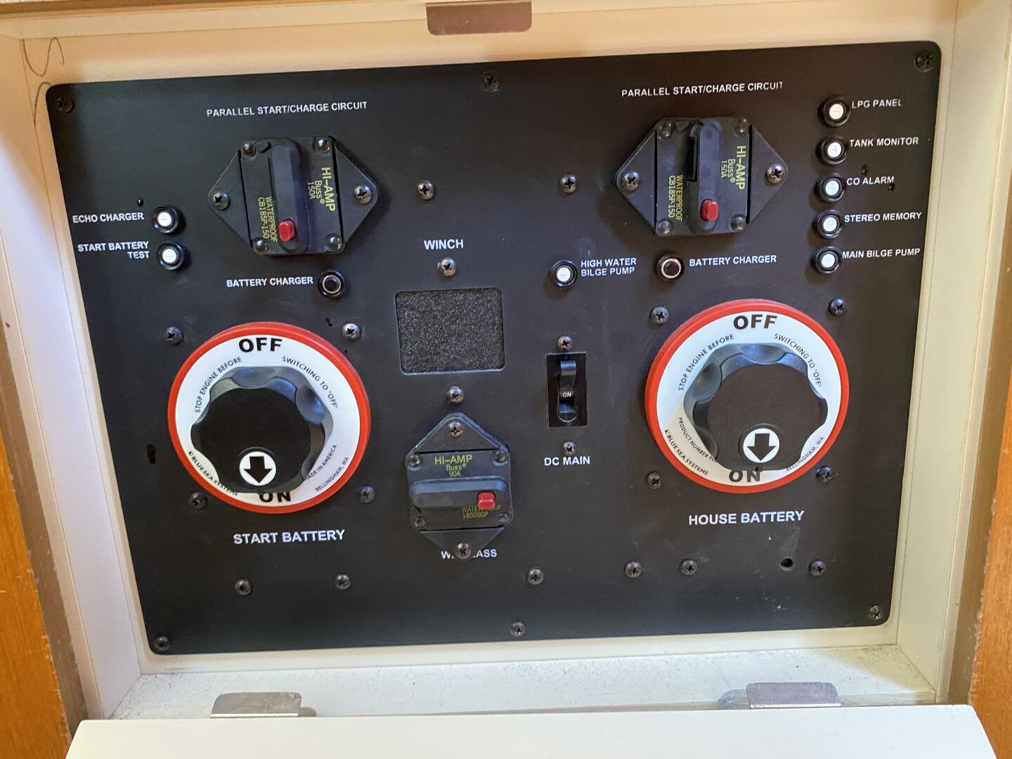 - Batteries: Two 8D 12VDC House,1 Engine Starting, and 1 Bow Thruster Battery